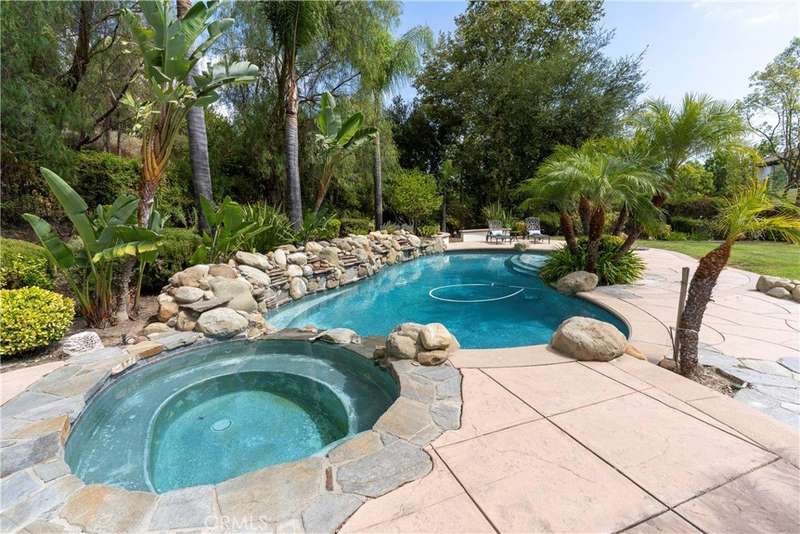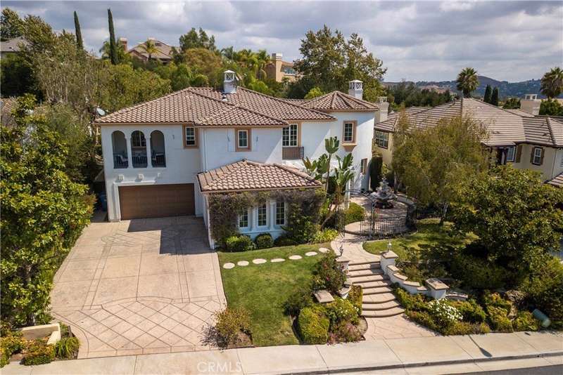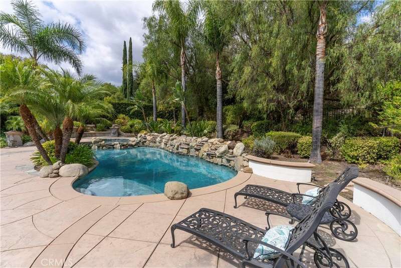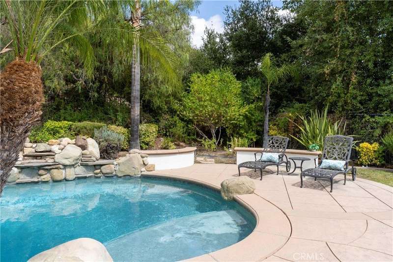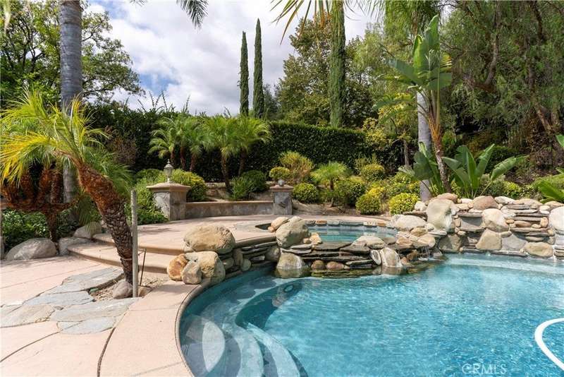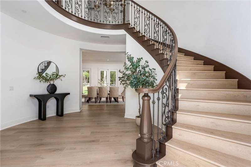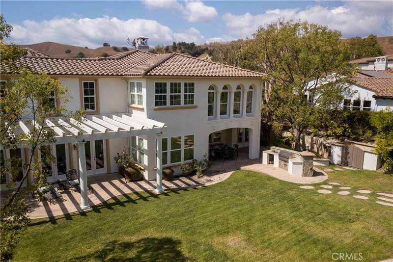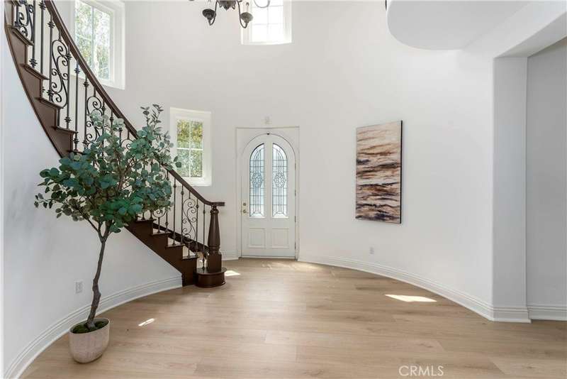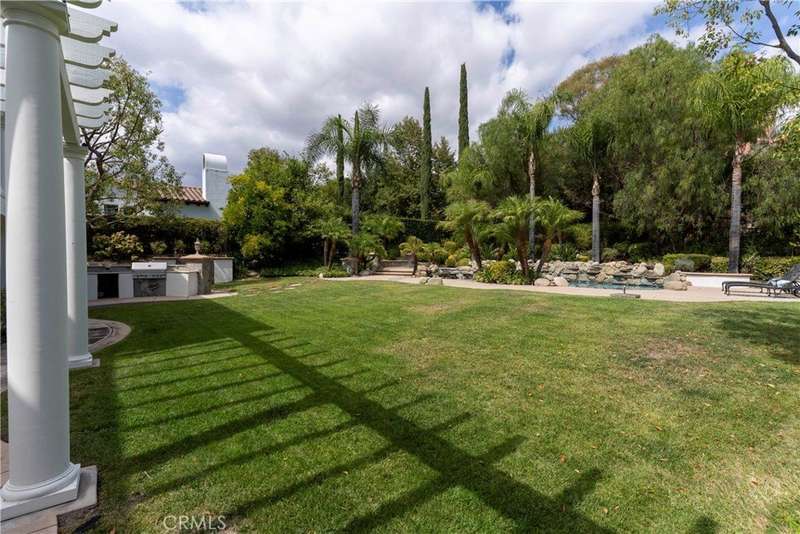 Welcome to Mont Calabasas, one of the most exclusive gated communities in Calabasas. This elegant estate greets you with a private courtyard featuring a tranquil water fountain and a pergola-covered sitting area, setting the tone for refined living. Inside, a grand foyer with soaring ceilings and a dramatic circular staircase bathed in natural light makes an immediate impression. The home has been updated with new flooring and fresh interior paint throughout. Formal living and dining rooms, each with a fireplace, provide timeless settings for entertaining. A spacious family room with a fireplace opens seamlessly to the chef’s kitchen, appointed with a center island, granite counters, new double ovens, microwave, wine refrigerator, and a built-in 48-inch stainless steel refrigerator. A breakfast nook and island seating complete the space. The nearly half-acre grounds are a private resort, offering a sparkling pool, spa, water features, multiple outdoor seating areas, and a built-in BBQ for alfresco dining. Designed for both comfort and function, the floor plan includes one bedroom and a dedicated office downstairs, plus four bedrooms and an additional upstairs family room. The luxurious primary suite is a private retreat with a sitting area, fitness room, spa-like bath with dual vanities, oversized walk-in closets, and balconies overlooking the park-like grounds. Additional highlights include a whole-house water treatment system and thoughtful upgrades throughout. This residence blends timeless elegance with modern amenities, delivering the ultimate Calabasas lifestyle.