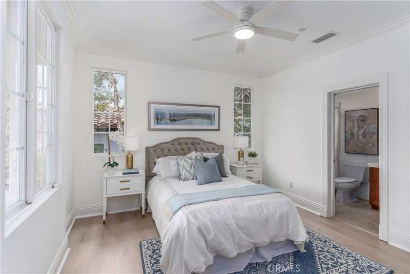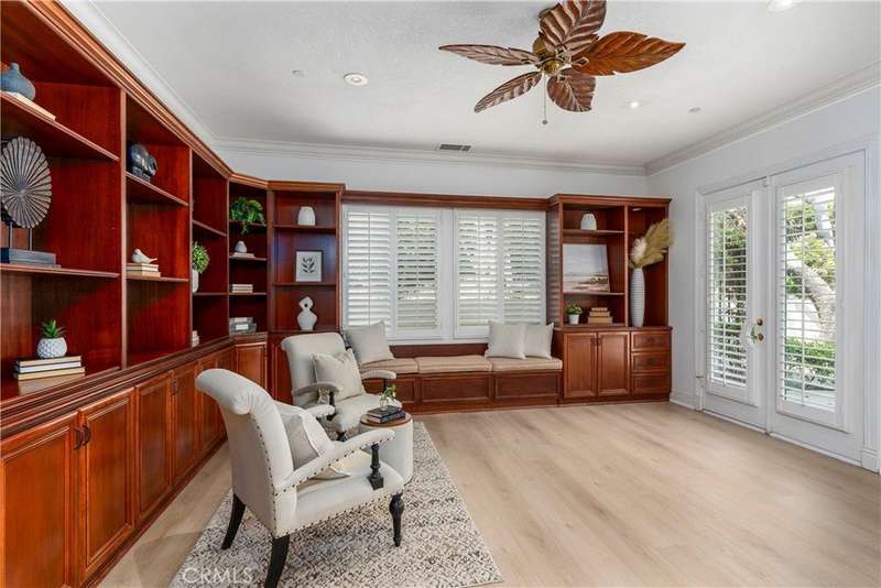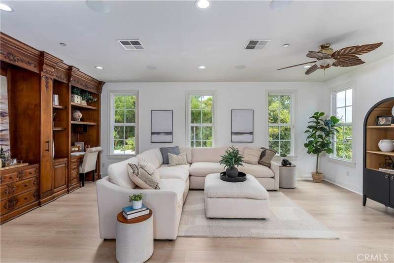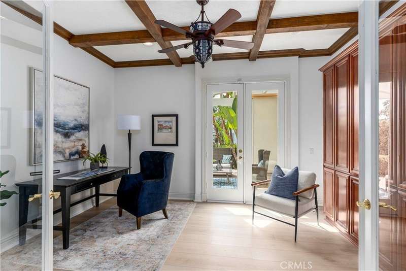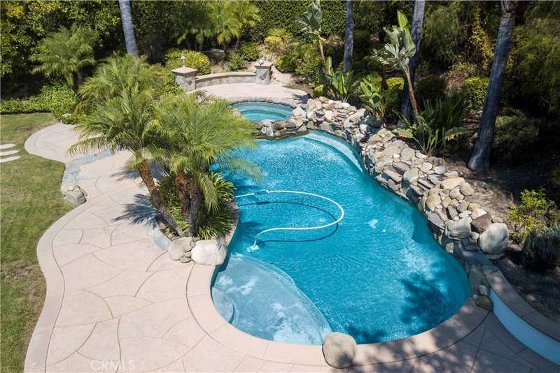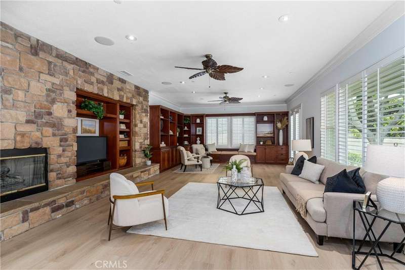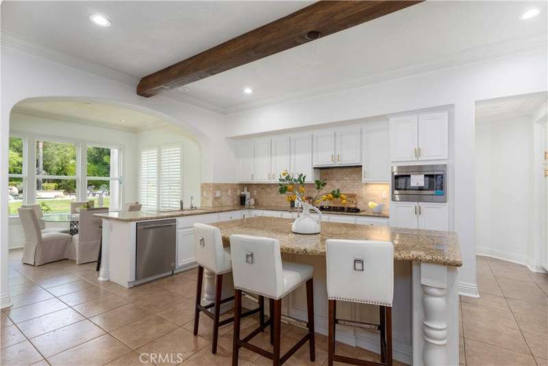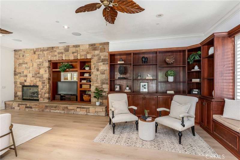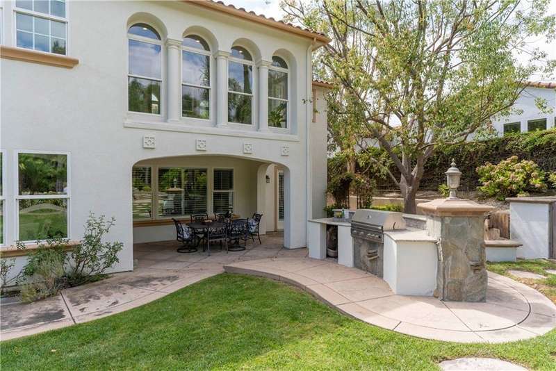 Welcome to Mont Calabasas, one of the most exclusive gated communities in Calabasas. This elegant estate greets you with a private courtyard featuring a tranquil water fountain and a pergola-covered sitting area, setting the tone for refined living. Inside, a grand foyer with soaring ceilings and a dramatic circular staircase bathed in natural light makes an immediate impression. The home has been updated with new flooring and fresh interior paint throughout. Formal living and dining rooms, each with a fireplace, provide timeless settings for entertaining. A spacious family room with a fireplace opens seamlessly to the chef’s kitchen, appointed with a center island, granite counters, new double ovens, microwave, wine refrigerator, and a built-in 48-inch stainless steel refrigerator. A breakfast nook and island seating complete the space. The nearly half-acre grounds are a private resort, offering a sparkling pool, spa, water features, multiple outdoor seating areas, and a built-in BBQ for alfresco dining. Designed for both comfort and function, the floor plan includes one bedroom and a dedicated office downstairs, plus four bedrooms and an additional upstairs family room. The luxurious primary suite is a private retreat with a sitting area, fitness room, spa-like bath with dual vanities, oversized walk-in closets, and balconies overlooking the park-like grounds. Additional highlights include a whole-house water treatment system and thoughtful upgrades throughout. This residence blends timeless elegance with modern amenities, delivering the ultimate Calabasas lifestyle.