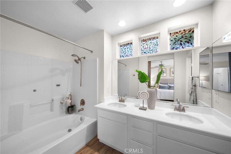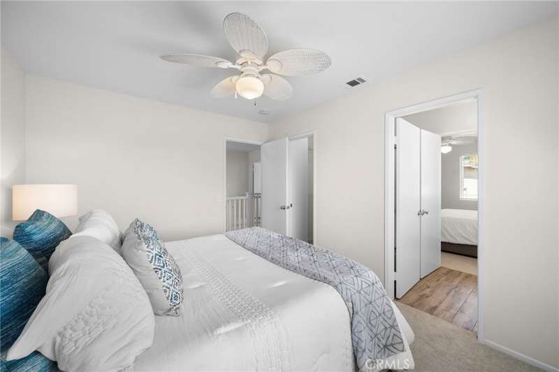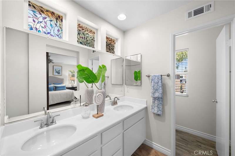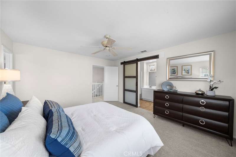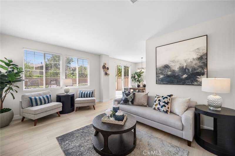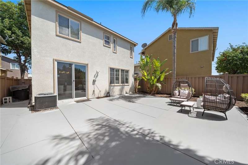 Welcome to Greystone Crossings, an exclusive enclave of just 36 detached single-family homes nestled in the heart of Orange and located within the highly acclaimed school zone of Fletcher Elementary, Cerro Villa Middle, and Villa Park High School. Homes in this sought-after community rarely come on the market, and this charming 2-story residence offers 3 bedrooms, a versatile loft, 2.5 bathrooms, an upstairs laundry room, direct-access 2-car garage, and a spacious private patio yard. Thoughtfully upgraded, it features central A/C, dual-pane windows, custom blinds, new wood vinyl flooring downstairs, brand-new carpet upstairs, and fresh interior paint. The open-concept floor plan is filled with natural light and showcases a generous living room with a gas fireplace and media niche that flows seamlessly into the dining area and bright white kitchen, complete with recessed lighting, tile countertops, inlaid backsplash, breakfast bar, walk-in pantry, and sliding glass doors that lead to a lush backyard with tropical landscaping and tall palm trees--perfect for indoor-outdoor living and entertaining. Upstairs, the airy loft with built-in cabinetry is ideal as a home office or homework station, while the primary suite offers a walk-in closet and a beautifully updated ensuite with dual sinks, barn door, privacy toilet, and tub/shower combo. Two additional bedrooms, each with walk-in closets, share a Jack and Jill bathroom, and all three bedrooms include ceiling fans. With its contemporary, low-maintenance design, this home suits an active lifestyle, and the serene backyard provides a perfect space to relax or entertain. Ideally located near parks, top-rated schools, Orange Mall, The Outlets at Orange, Chapman University, dining, entertainment, and freeways--with low HOA dues and no Mello-Roos--this home truly offers the perfect blend of comfort, convenience, and community.