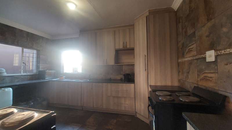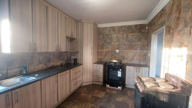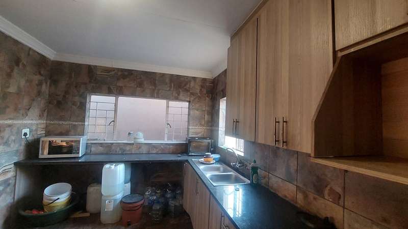 This well-maintained home offers comfort, convenience, and plenty of space for future potential. It features three bedrooms, each fitted with built-in cupboards, and a full bathroom. The heart of the home is its huge, modern kitchen, perfect for family cooking and living area for gatherings, while the entire house is beautifully tiled throughout for easy upkeep. Outside, you’ll find a single garage and an additional outside room, ideal for storage or conversion into a flatlet. The very large stand provides ample space for gardening, entertaining, or future extensions. Situated close to local amenities, this property offers both lifestyle and investment value. Key Features: Three bedrooms with built-in cupboards Living area Full bathroom Large kitchen Fully tiled interior Single garage Outside room Huge stand with future potential Close to amenities.