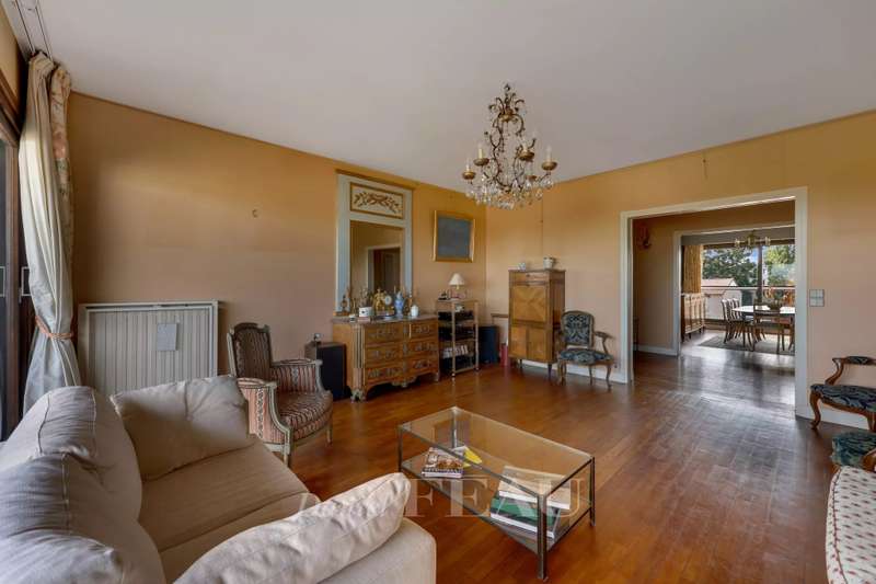 Residence Marie Bonaparte. This apartment benefiting from a balcony and a little terrace is on the 5th floor of a luxurious relatively recent residence with a caretaker and leafy grounds. 113.51 sqm of living space as defined by the Carrez Law includes an entry with a cloakroom and a guest wc, a bright and spacious living/reception room opening onto a terrace commanding a view of the capital and the Eiffel Tower, a dining room, a kitchen with dining facilities, two spacious bedrooms including a master suite opening onto the terrace, a bathroom and a shower room. Ample fitted storage space. With a double lock-up garage and a cellar. Refurbishment is required to exploit the full potential. Near the shops, the transport networks and the schools a short distance west of the capital.