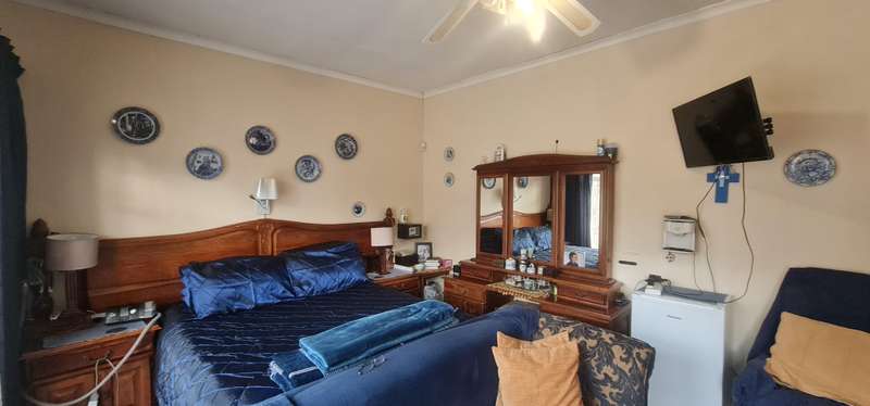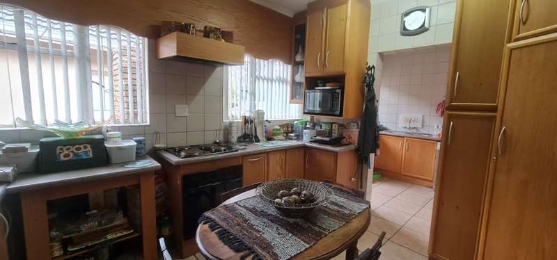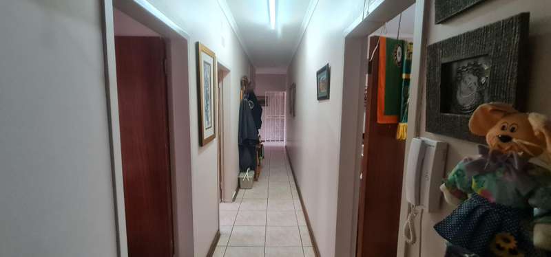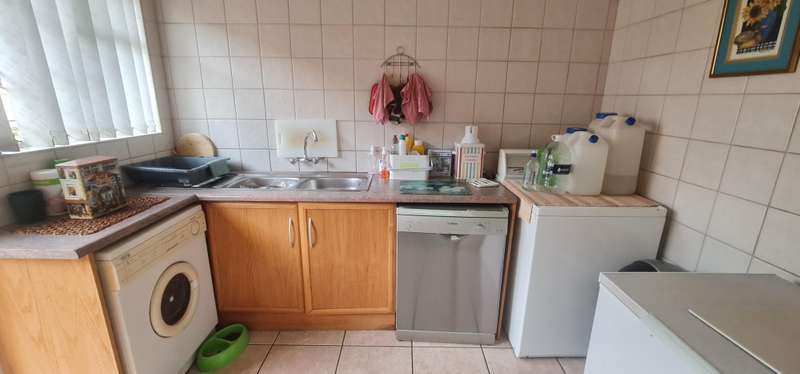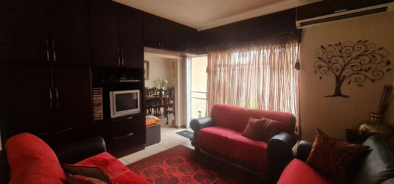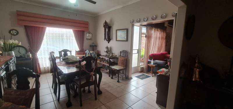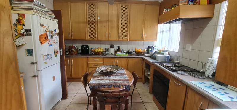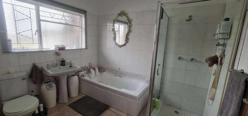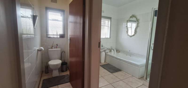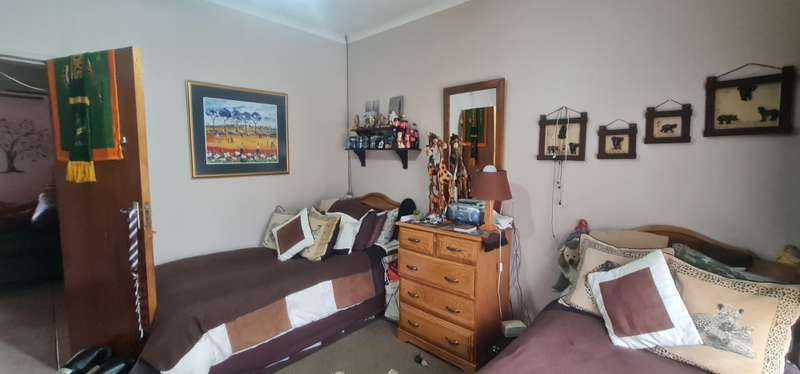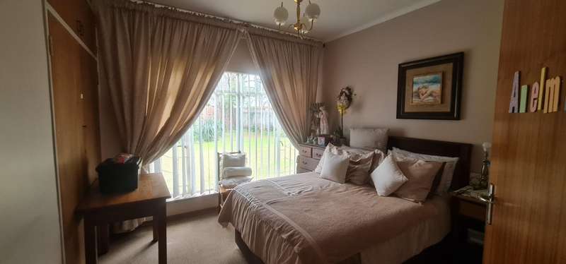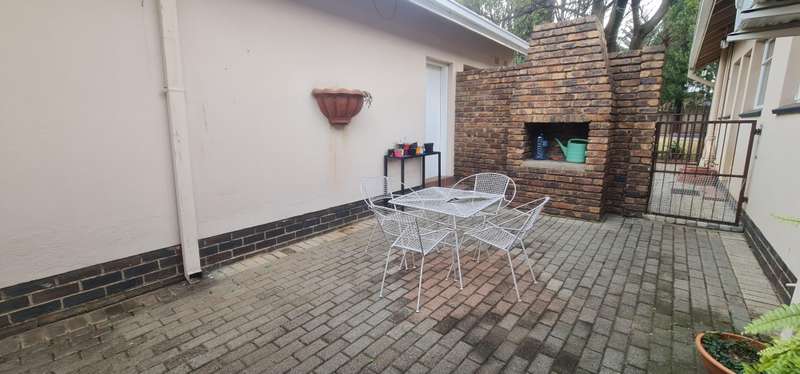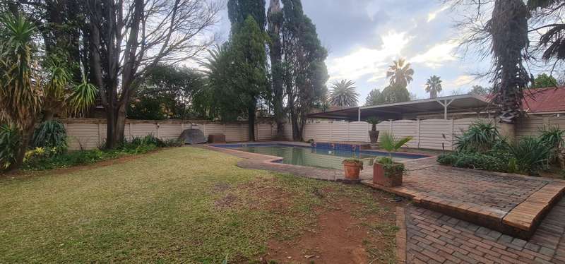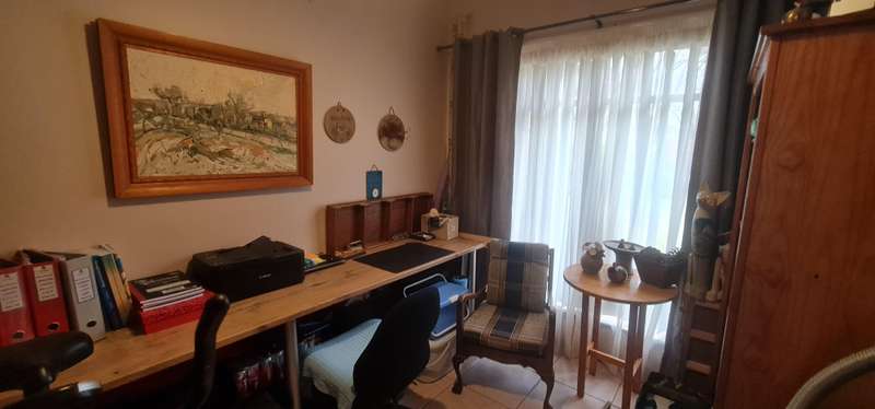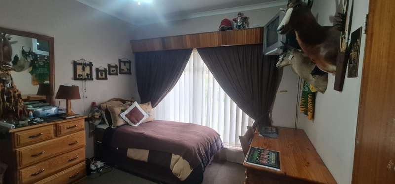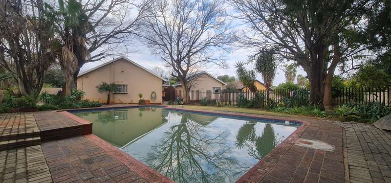 3 Bedroom home with Pool, Borehole and Irrigation system. A true sense of home comes over you as you enter. Leading directly of the entryway is the lounge, followed by the study to right and dining area to the left with family/TV room alongside. A doorway from Tv room leads out into courtyard with built in braai. Kitchen is in the true sense the heart of this home, with wall-to-wall wooden cabinets, ample working space, undercounter oven with electrical hob and extractor. Separate scullery/laundry, connections for dishwasher, washing machine and tumble dryer. All three bedrooms are north facing (to grab the winter sun) with built in cupboards and in the main bedroom there is also a dressing area, en suite bathroom, and a doorway out to private patio area. Family bathroom and guest bathroom are at the end of the hallway, with bath and shower in the family bathroom. At the back of the home, safely enclosed is a large and well-maintained swimming pool, overlooking the rest of the back yard. Alongside the courtyard and free standing from the home is a double garage with staff quarters and double carport. Neat, and well-established garden runs around the home, enclosed on all sides. Borehole with irrigation system makes maintaining of the garden a breeze.