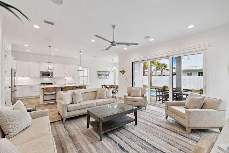 Step into refined coastal living with this exquisite 7-bedroom, 4.5-bathroom residence crafted in 2023 by renowned builder Jared Boswell. A single-owner home, it showcases the attention to detail and superior craftsmanship that has made Boswell a trusted name along the Emerald Coast.Spanning 3,583 square feet, this three-story retreat was thoughtfully designed to accommodate both relaxation and entertainment. Inside, no expense was spared in the furnishings and finishes, offering a turnkey opportunity for either full-time living or a fantastic vacation rental. Custom built-in bunks maximize sleeping arrangements, making this home ideal for hosting large families or groups. The heart of the home flows seamlessly into the outdoors, where a private pool and beautifully designed exterior living space invite you to unwind in the Florida sunshine. The contemporary design, open-concept layout, and abundant natural light create an inviting and stylish atmosphere throughout.Located in the sought-after Second Addition of Frangista Beach, this property provides easy private access to the sugar-white sands and turquoise waters that make Miramar Beach a world-class destination. Just moments from local dining, shopping, and entertainment, it captures the very best of the coastal lifestyle.This home isn't just a place to stayit's a statement of elegance, comfort, and lasting value.