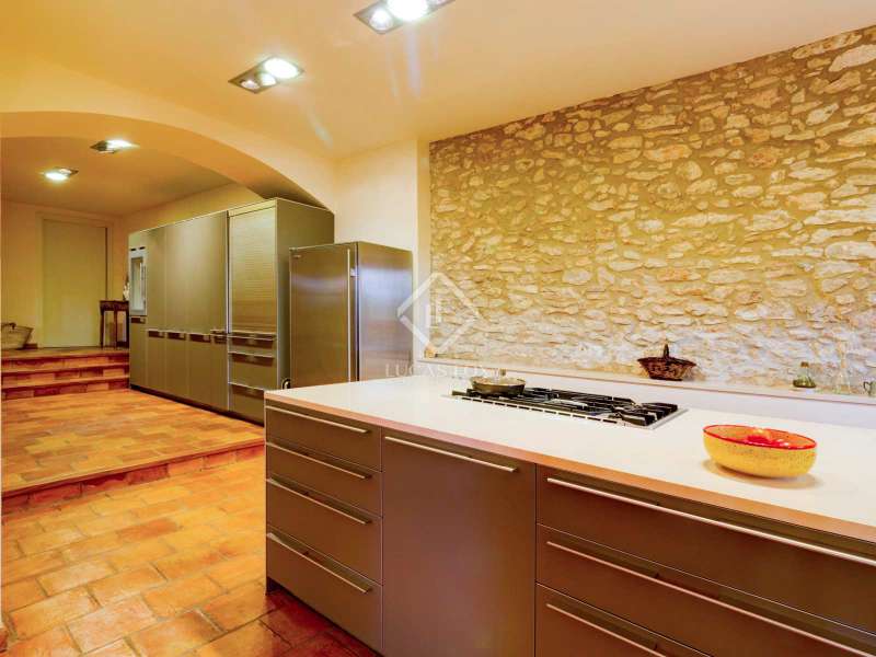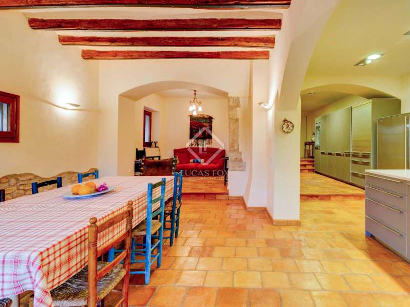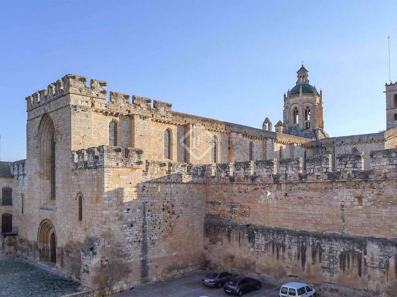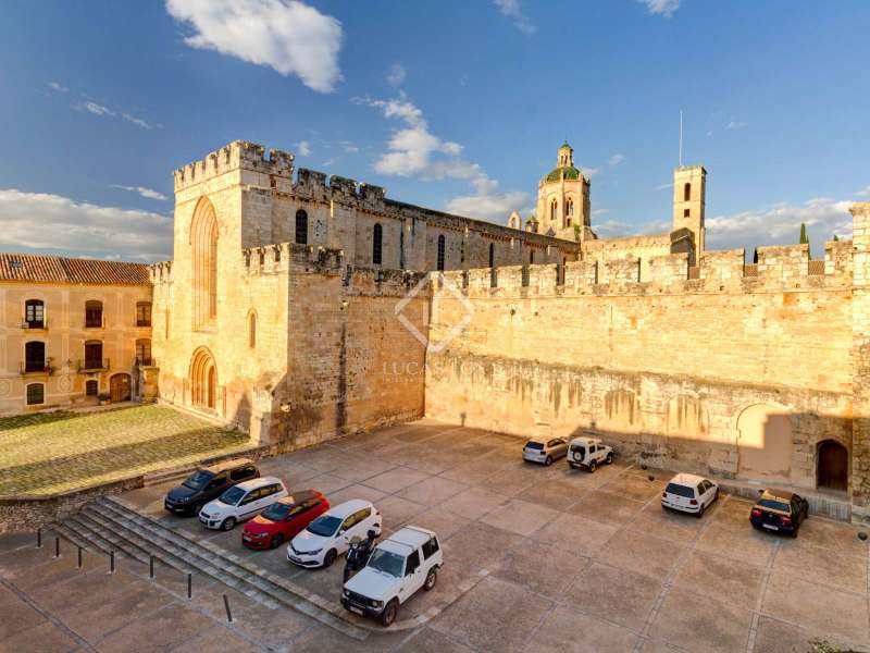 This house for sale was part of the monastic complex of Santes Creus. It served as a hospital and warehouse at different times, until in 1835, as a result of the Spanish confiscation, the family that currently owns the property bought it. Due to its configuration, the property could be divided into three homes, making the necessary adaptations. Access to this four-storey house is via Plaça de Jaume el Just, within the monastery grounds. On level 0 we find a large hall that can be reached from a corridor. A short staircase leads us to the living area of the house, with a large hall with a seating area and an entrance door to the great living room. The living room has an imposing fireplace and enough space to have several areas. In the hall we also find doors to two large double bedrooms, a small dining room, the old kitchen and the staircase that descends to level -1. A staircase with a few steps also starts from the hall, which leads to another landing that provides access to a complete bathroom, the laundry room and the staircase to the upper floors. This staircase starts in a hall next to the main entrance, with a separate door and a living room-office with a window to the square. On level +1 we find a night area that could be separate, with a central landing from which access to three alcove-style bedrooms. One of the bedrooms has access to a covered gallery with arches and a large terrace with views, a complete bathroom and a living room. Following the same staircase, we reach level +2, with an open-plan room on two levels and the possibility of making a new layout to form a separate apartment. Currently, this floor has two bathrooms, wooden flooring and general lighting. The -1 floor houses the kitchen units and the main dining room, which incorporates an adjoining living area. A glass door leads to a natural garden on two levels, where we have a fountain, the old laundry area and various trees. The house also has a private garage with access to the square.