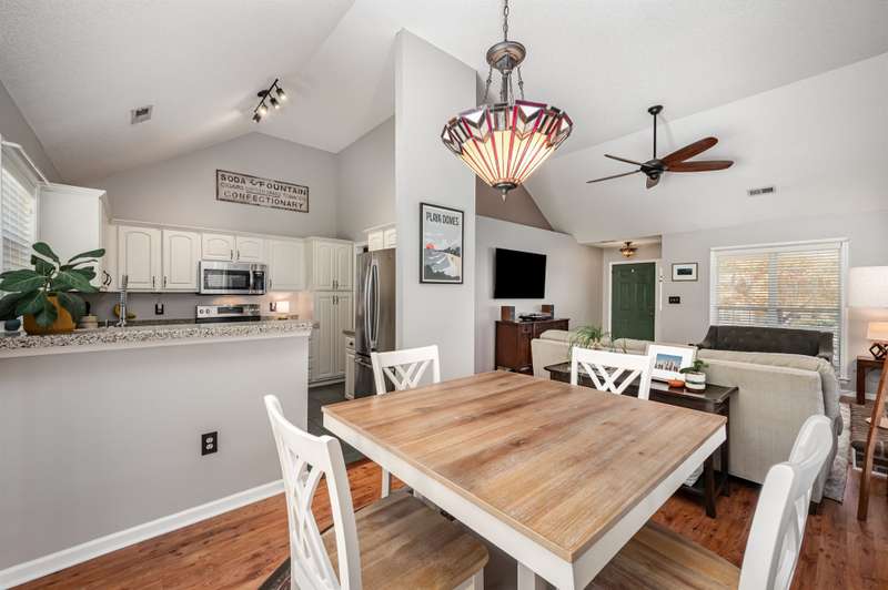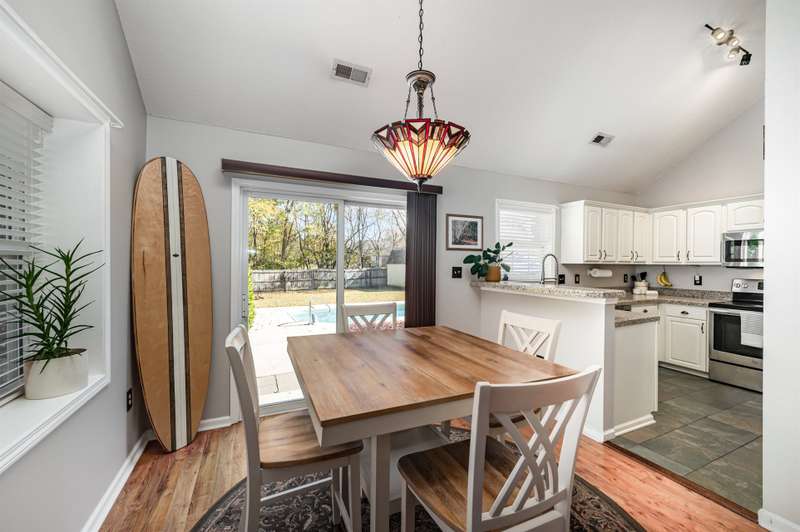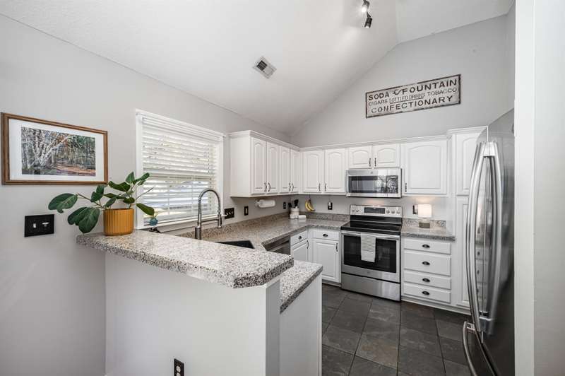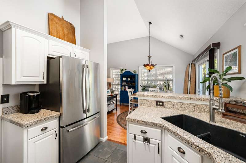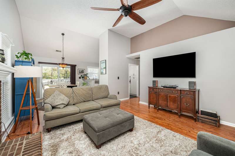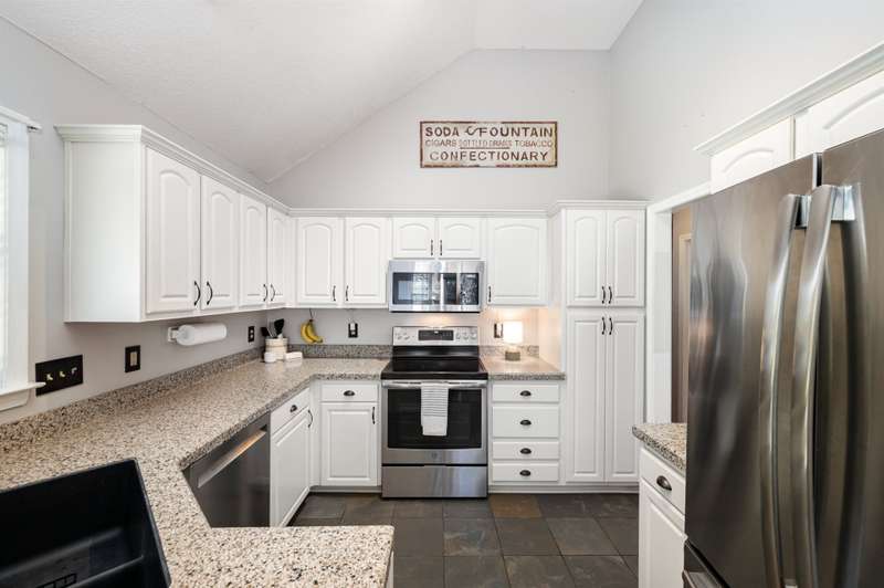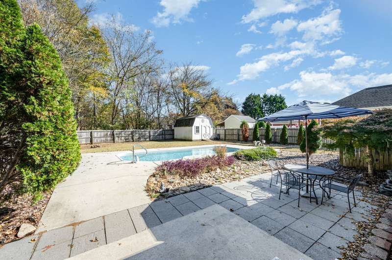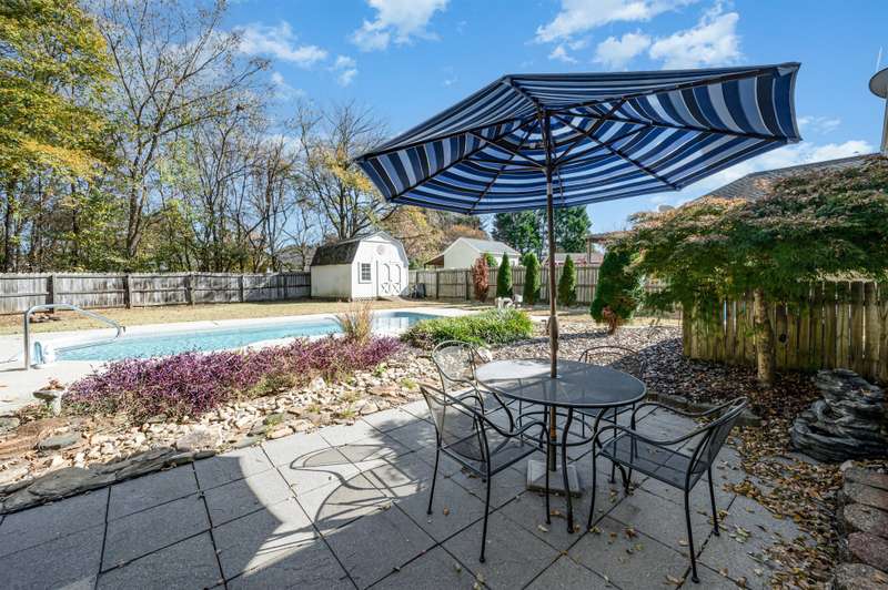 This inviting ranch home blends comfort, charm & convenience in one of the area's most desirable Concord locations. The moment you arrive, the wide lot with mature trees & inviting front porch make you feel right at home. The covered front porch sets the tone for relaxed living, while the open interior welcomes you with high vaulted ceilings, abundant natural light & a cozy brick fireplace perfect for gathering on chilly fall evenings. The kitchen shines with white cabinets, stone-look counters, stainless appliances & plenty of prep space. You'll appreciate having a true laundry room with storage in this home rather than a noisy hallway laundry closet. The primary suite is spacious with vaulted ceilings & a beautifully renovated bath featuring a furniture-style dual sink vanity with marble top & an oversized walk-in shower. Out back, the fun really begins. Sparkling inground pool, spacious patio, fenced yard & plenty of room to play or relax. A large storage shed keeps everything tidy, & no HOA means more freedom to enjoy your space. You'll love the unbeatable location just minutes from Afton Village's dining & shops & just a few minutes in the other direction, the trails, lake & picnic spots at Frank Liske Park. This one checks every box for style, comfort & lifestyle.