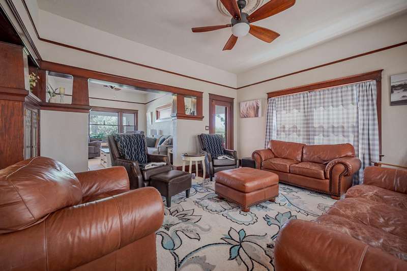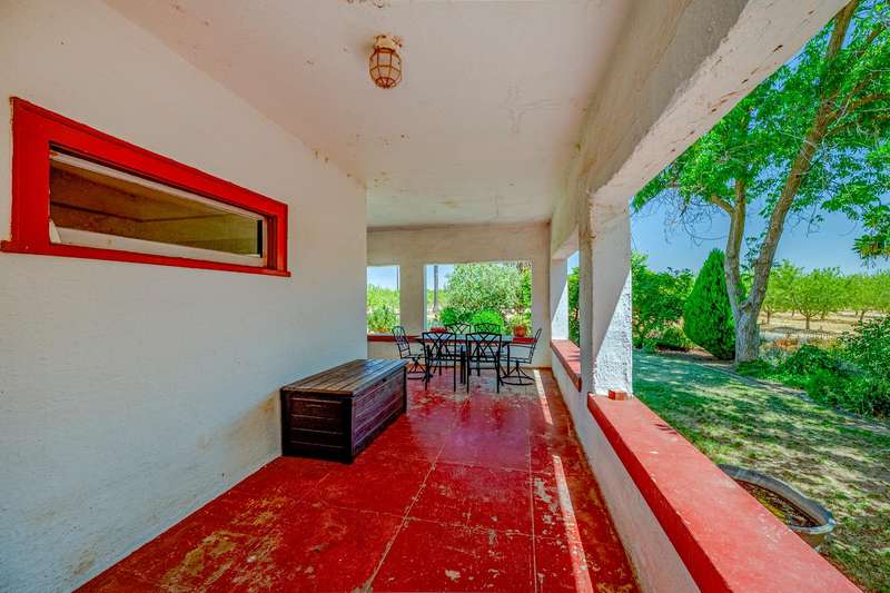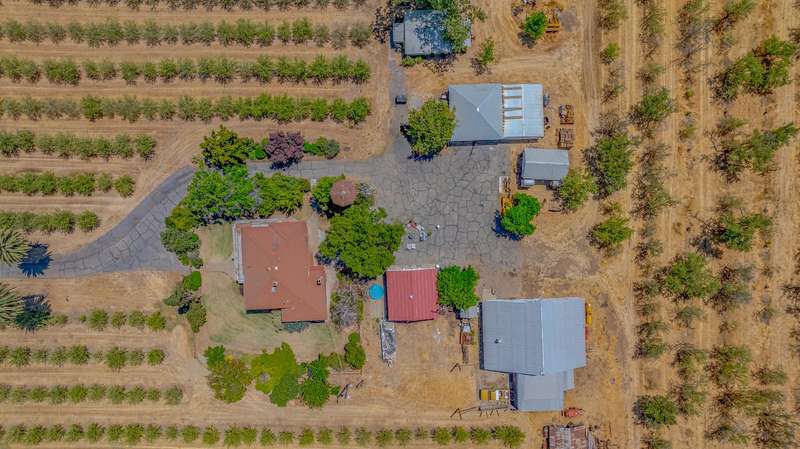 Beautiful 5-bedroom, 3-bathroom home featuring a separate guest house, 3 barns, garage and 3 shops. Thoughtful wall texture, bathroom, flooring, and kitchen renovations throughout blend modern comfort with timeless charm. Nestled on approximately 39 acres of producing almonds, this property also includes two ag wells and a domestic well. A perfect blend of agricultural potential and serene country living. (Buyer to investigate availability of surface water and possible surface water rights.) Tax Records show different number of bedrooms (buyer to investigate). Sq ft, bed count, bath count, and year built of ADU not available on tax records, buyer to verify if important.