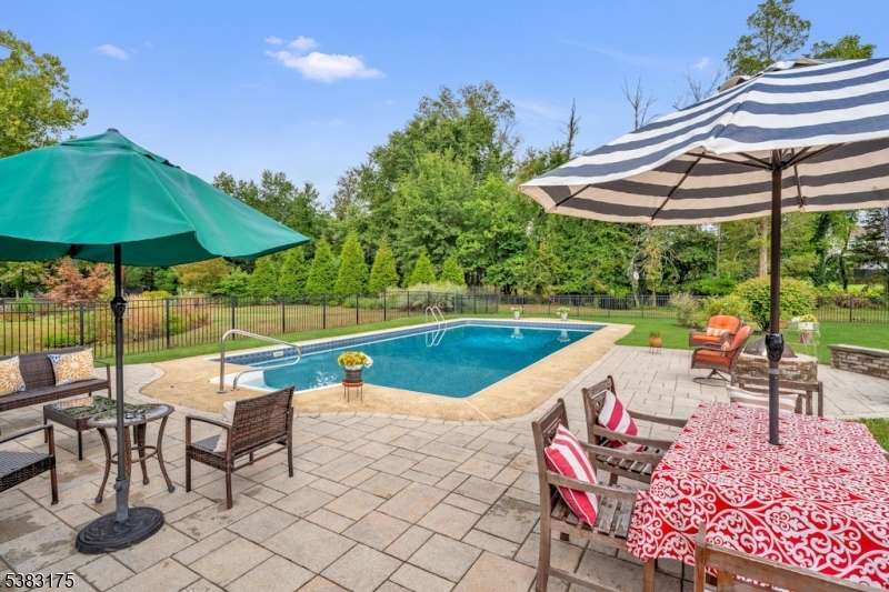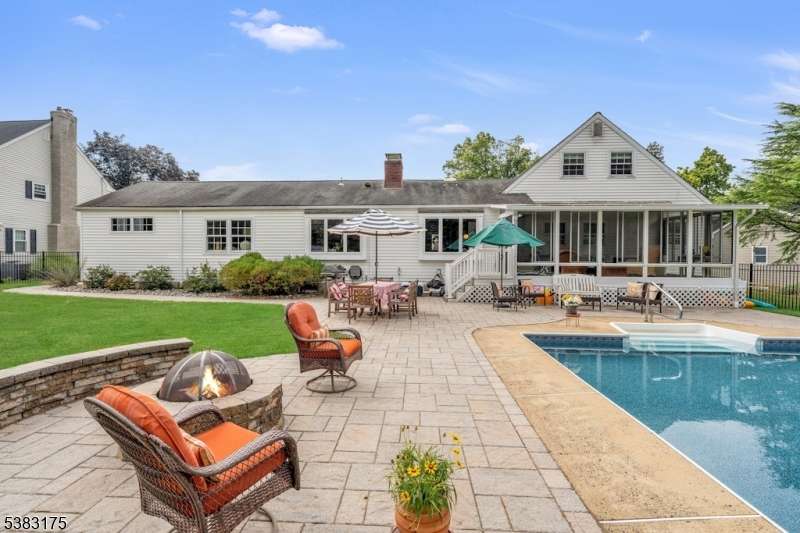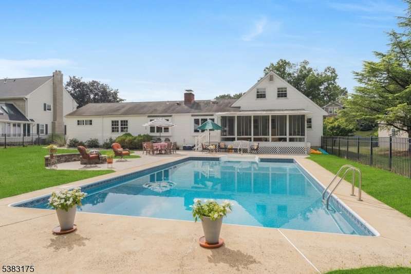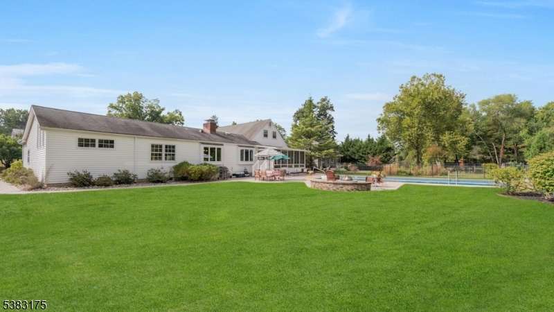 Step inside this beautifully maintained 5-bedroom, 3.5-bath expanded ranch and discover a home that blends timeless charm with modern convenience. From the moment you enter, gleaming hardwood floors set the stage for a warm and inviting atmosphere. The spacious formal living and dining rooms provide the perfect backdrop for gatherings, while the cozy family room, anchored by a raised-hearth, all-brick wood-burning FP, invites you to unwind at the end of the day. The 1st fl primary suite offers a private retreat, designed for both comfort and convenience. A versatile den/office with vaulted ceiling, remote-operated ceiling fan, and built-in surround sound wiring makes working from home or enjoying movie nights effortless. Abundant closet space, attic storage, and a 1st Fl laundry room, every detail has been thoughtfully designed to make daily living a breeze. Resort-like backyard, featuring a 20x40 in-ground pool, new pavers surrounding the pool, and a designer block patio. Whether you're hosting summer barbecues, roasting marshmallows by the fire pit, or simply relaxing poolside, this space is built for entertaining. Estate fencing adds both elegance and privacy. This home is more than just a place to live, it's a lifestyle! This home comes with a refrigerator in the basement as well as an additional refrigerator in the garage. *ALL OFFERS DUE BY WEDNESDAY AT 12 NOON, SEE OFFER GUIDELINES IN MEDIA*