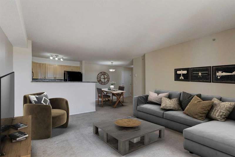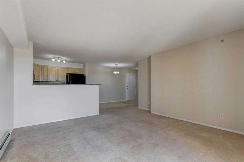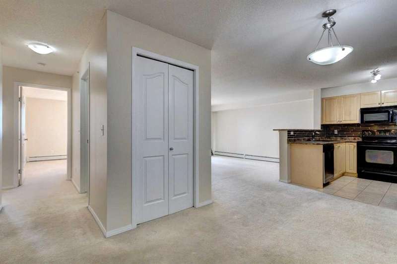 This top floor (nobody upstairs from you is a true bonus) 2 bedroom, 2 bathroom unit features an additional room that could be used for a home office, child's play area, man cave, home gym, library or whatever you wish, At over 1050 sq ft, it’s the largest floorplan in the complex. Both bedrooms are a good size so a guest room, roommate or child’s room are all possibilities. The in suite laundry is full size front loaders! You’ll love the balcony, overlooking the community below and there’s even a mountain view to enjoy while sipping your morning coffee, a glass of wine before dinner, or a Saturday afternoon beer with a friend. A titled underground parking space is so welcome in winter and summer, for comfort and security, and the long term leased spot above ground is near the entrance and is very handy for a large vehicle and especially handy for a second vehicle. Easy access to Stoney or Deerfoot for commuting purposes and lots of shopping, restaurants and amenities are so close! The entire unit is Freshly painted and your Condo fees include all utilities for easy budgeting. This unit is move- in ready or easy to rent out as an income property if you prefer. Cats are welcome in the building