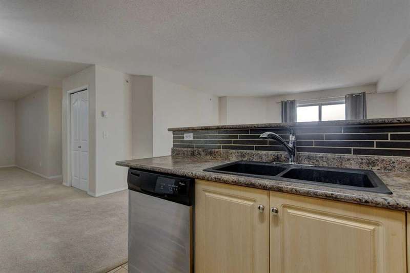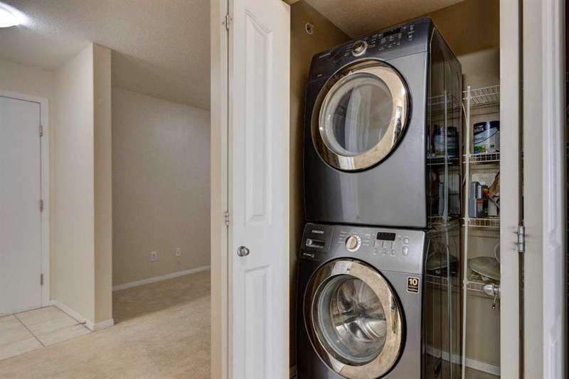 Come visit our open house this Saturday Nov 1 from noon to 2:00! This top floor (nobody upstairs from you is a true bonus) 2 bedroom, 2 bathroom unit features an additional room that could be used for a home office, child's play area, man cave, home gym, library or whatever you wish, At over 1050 sq ft, it’s the largest floorplan in the complex. Both bedrooms are a good size so a guest room, roommate or child’s room are all possibilities. The in suite laundry is full size front loaders! You’ll love the balcony, overlooking the community below and there’s even a mountain view to enjoy while sipping your morning coffee, a glass of wine before dinner, or a Saturday afternoon beer with a friend. A titled underground parking space is so welcome in winter and summer, for comfort and security, and the long term leased spot above ground is near the entrance and is very handy for a large vehicle and especially handy for a second vehicle. Easy access to Stoney or Deerfoot for commuting purposes and lots of shopping, restaurants and amenities are so close! The entire unit is Freshly painted and your Condo fees include all utilities for easy budgeting. This unit is move- in ready or easy to rent out as an income property if you prefer. Cats are welcome in the building