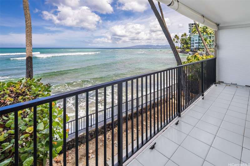 Any closer to the ocean and you'd be swimming! Enjoy oceanfront living in this light, bright one-bedroom condominium, ideally located in one of the Gold Coast's best spots. Sliding glass doors front the entirety of this second floor residence, creating a direct connection to the surf from all living spaces, including the bedroom. Step outside and you're in the water in under a minute, with easy access to Tongg's for great surf year-round. Windows on both the mauka and makai sides of this unique property capture trade winds to keep this condo cool. One deeded and assigned parking stall is included for your convenience, and 2987 Kalakaua is a well-managed building with very low maintenance fees. Perched on the slopes of iconic Diamond Head, the Gold Coast offers blend of tranquility and active living in a walkable, coastal neighborhood. Don't miss this opportunity to make the Pacific Ocean your backyard.