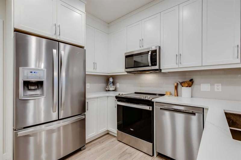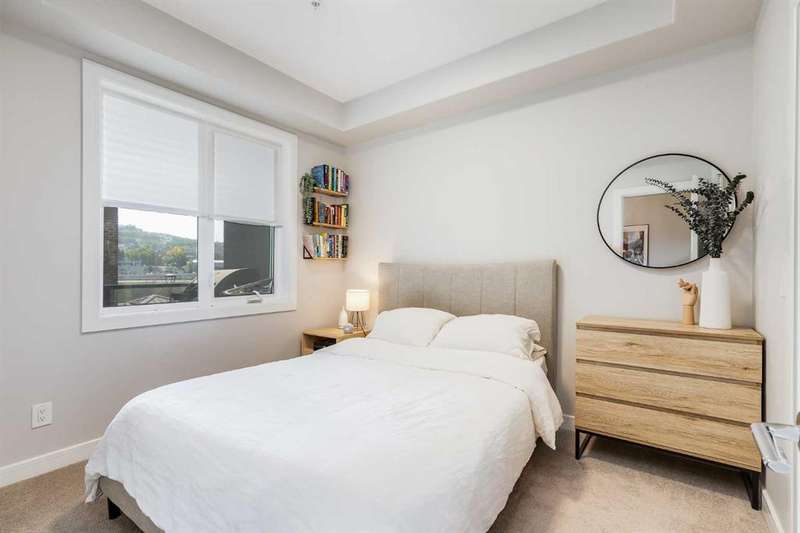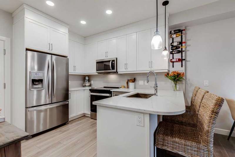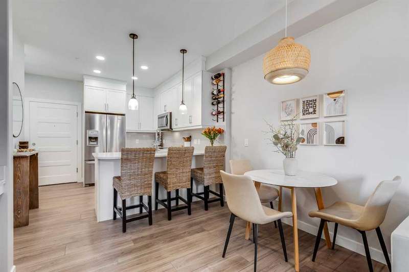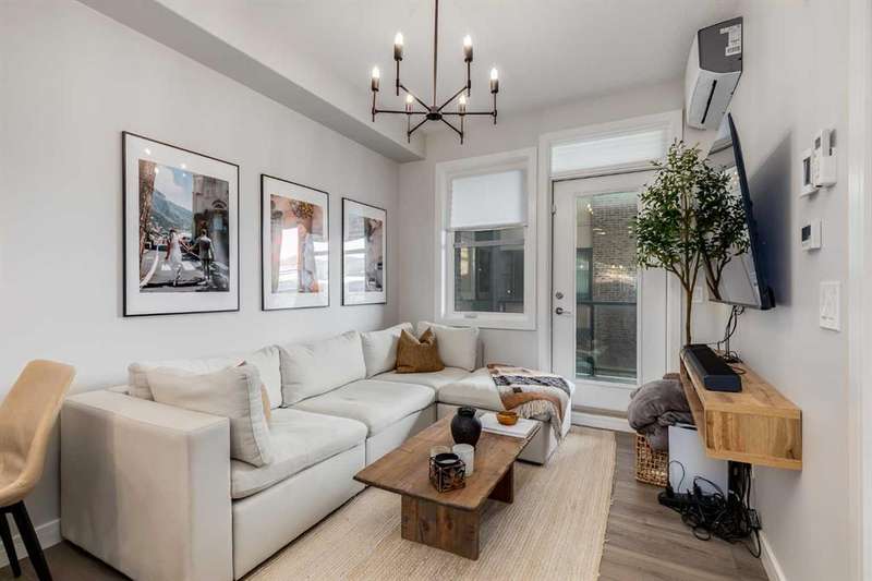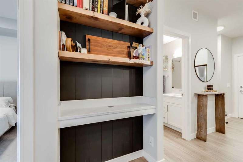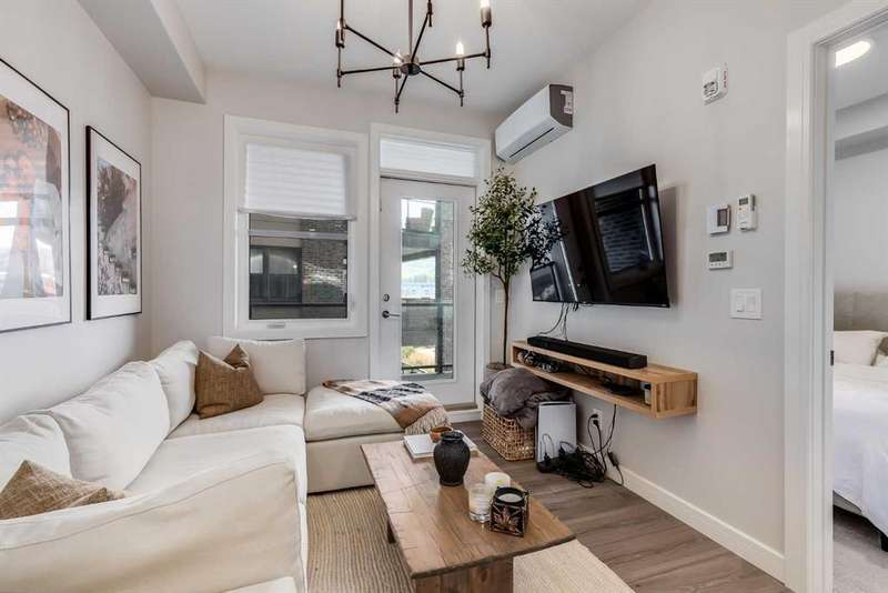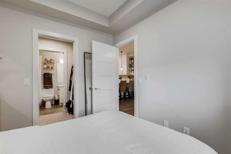 Wake up to the perfect blend of city style and outdoor freedom in this stunning 1-bedroom suite at the Apollo of Greenwich by Cove Properties. Sunny, fresh and move-in ready, it’s designed for the nuances of everyday living. Thoughtfully laid out floor plan features 9’ ceilings, in-floor heating, air conditioning, quartz countertops with bar seating, luxury vinyl plank flooring, floor-to-ceiling cabinetry and stainless steel appliances — everything you need in a modern urban retreat. Step out onto your SW-facing balcony to enjoy generous sightlines and afternoon sun. Underground parking, in-suite laundry, extra storage, and community bike storage complete the package. Located in Greenwood/Greenbriar, a hidden NW Calgary gem, your mornings start with coffee at Analog, weekends roll into Bowness Park picnics, and WinSport is practically your backyard. Trails stretch endlessly, highways take you anywhere, and the Calgary Farmers’ Market and shopping are just steps away. This is a neighbourhood where life feels connected, grounded, and endlessly livable.
