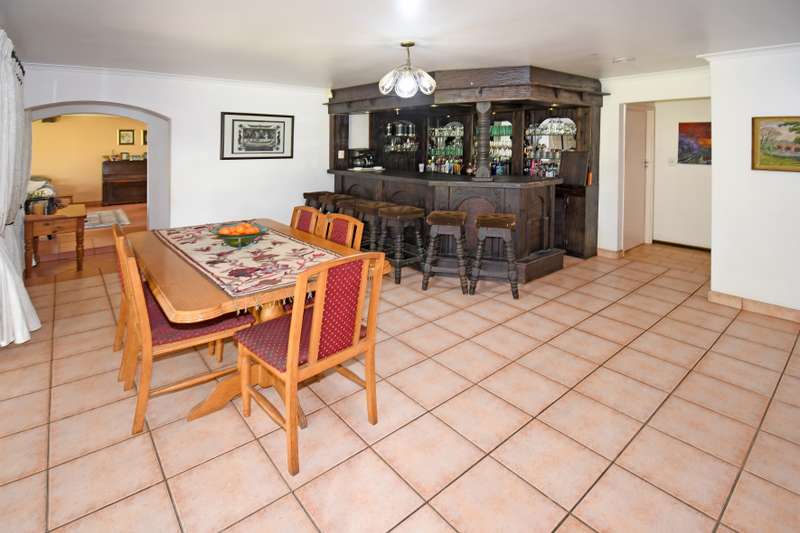 This well-kept 3-bedroom, 2-bathroom home offers practical living with space for work, family, and entertaining. The main bedroom has its own en suite bathroom, while the other two bedrooms share a bathroom. There’s also a separate study — ideal for working from home, a quiet reading room or an extra bedroom. The kitchen is functional with space for 2 appliances, a separate scullery and dedicated laundry room, keeping day-to-day living organized. The dining room includes a built-in pub and opens to the lapa and garden, with a trampoline for the kids- perfect for relaxed outdoor living. The garden is beautifully well established, with a pool for summer days. A solar geyser and solar panels help keep running costs down, and the home also includes two garages for secure parking. The beauty of this home is that the interior is all dry-wall, you can remodel as you see fit. Conveniently located near all major roads, amenities, and good schools, this home offers easy access to everything a family needs. Features: • 3 bedrooms, 2 bathrooms (main en suite) • Study • Kitchen with scullery • Separate laundry • Dining room with built-in pub • Double garage • Solar geyser & solar panels • Lapa • Pool • Well-maintained garden • Close to major roads, shops, and good schools A solid, practical home with great potential in a convenient sought after location.
