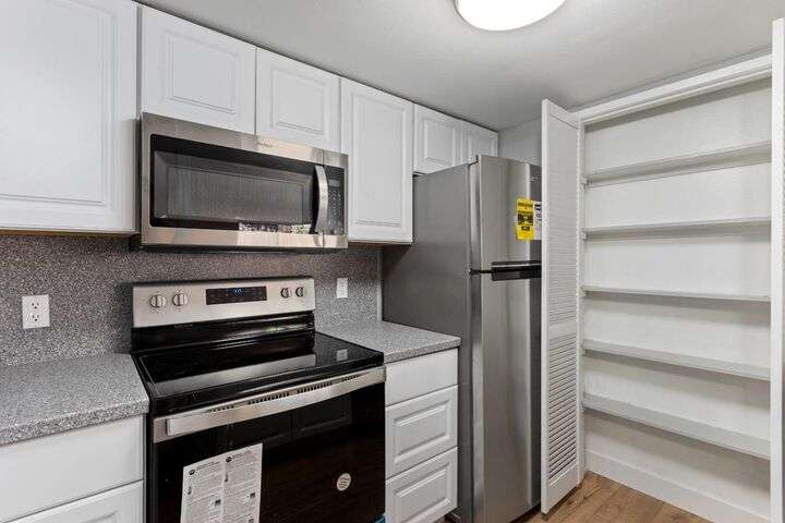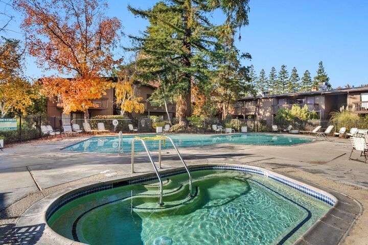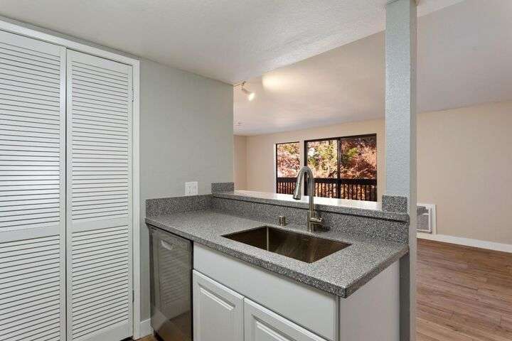 Updated Upper Floor Studio Unit with just about everything changed out! This Studio Unit has one full bath and the following NEW amenities: Kitchen Cabinets / Solid Surface Counter Tops / Range/Oven / Dishwasher / Refrigerator / Sink / Laminate Flooring Throughout / Bathroom Vanity, and Heat/Air System! This one is Move in Ready! Experience a seamless blend of indoor and outdoor living areas with a large window/sliding door that leads to a deck and storage room. Enjoy listening to the waterways and viewing the beautiful landscaping and wildlife (koi fish, turtles, ducks) at this resort-like property. Amenities include: Three swimming pools, two spas, pickleball/tennis courts, large clubhouse with full kitchen, TV, Wi-Fi, pool & ping pong tables, exercise room, and plenty of guest parking-Boat & RV parking too! Four cabanas located above the clubhouse for your guest to sleep overnight. Close to Mid/Downtown. American River Bike Trail, CSUS, shopping and more.