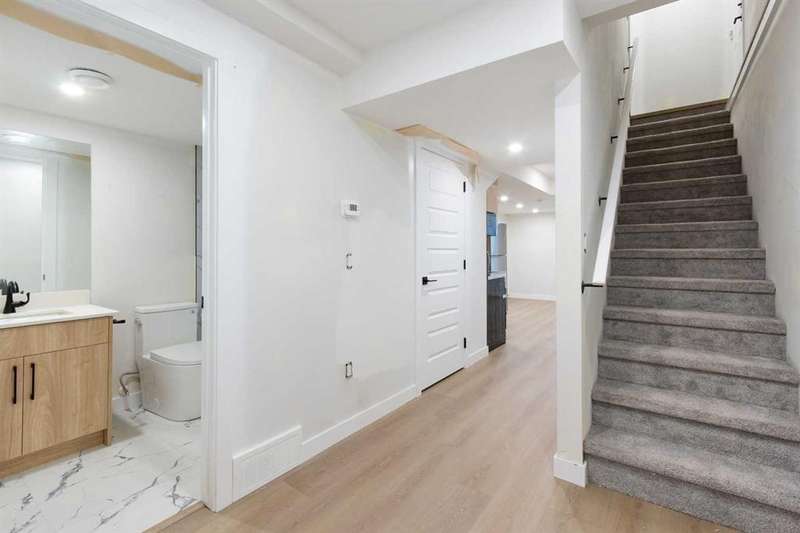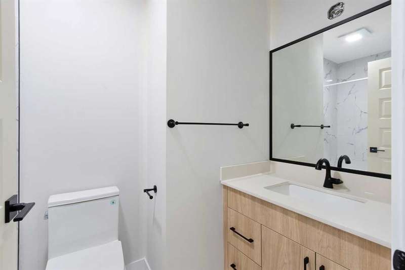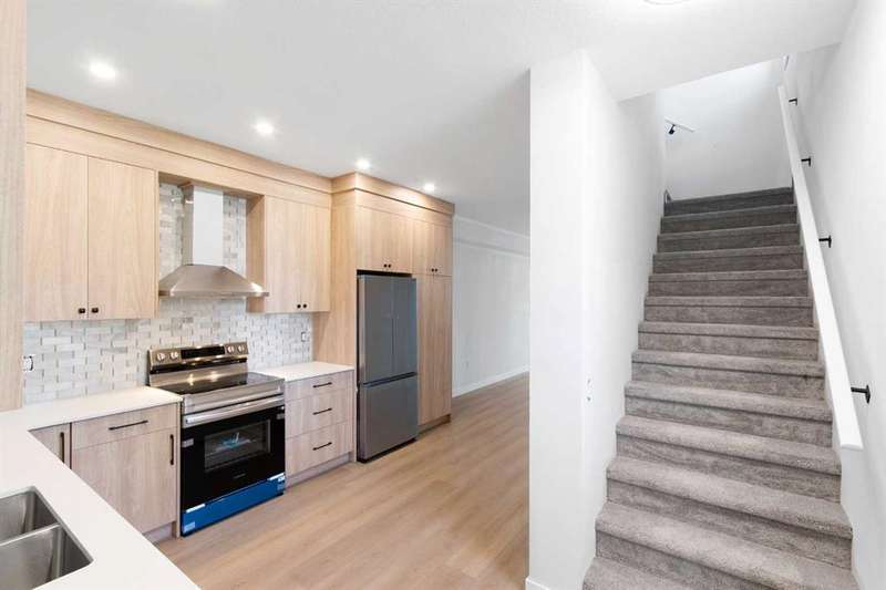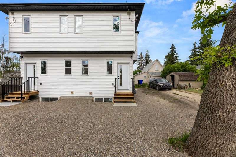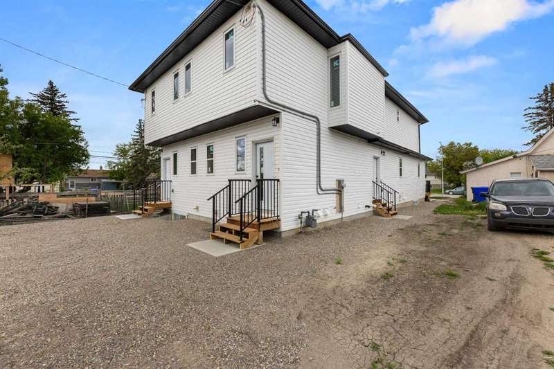 Welcome to this stunning, newly constructed half duplex in Olds, Alberta, offering modern living with exceptional rental potential. The main floor features a spacious living room that seamlessly flows into a contemporary kitchen equipped with brand-new appliances and ample cabinetry. Adjacent to the kitchen is a dining area, perfect for family meals or entertaining guests. A convenient 2-piece powder room completes this level, ensuring comfort and functionality. From the dining area, step out onto a private backyard deck, ideal for outdoor relaxation and gatherings. Upstairs, you'll find three generously sized bedrooms, each offering ample closet space and natural light. The master suite boasts an 4 piece ensuite bathroom, providing a private retreat. An additional 4-piece bathroom serves the other two bedrooms, and a dedicated laundry area adds to the home's convenience. The lower level houses a legal basement suite with its own separate side entrance, ensuring privacy for tenants. This legal suite includes two spacious bedrooms, a large kitchen area, with dishwasher, stove, fridge, a 4-piece bathroom, and laundry in the hall with stacking washer and dryer. A storage room offers additional space for belongings. Whether you're seeking a mortgage helper or an investment property, this legal suite provides excellent rental income potential. Located near Olds College, this property is ideally situated for a rental property. With its modern design, legal suite, and prime location, this home offers both comfort and investment value.