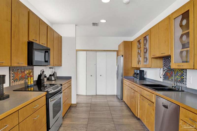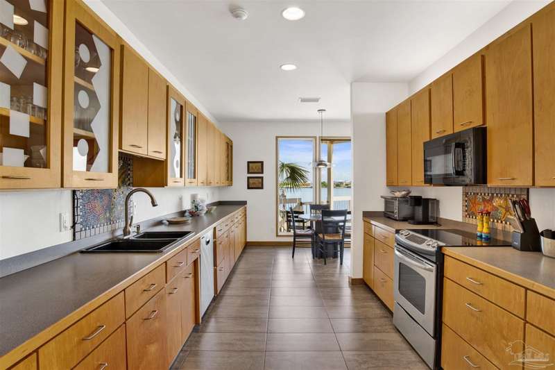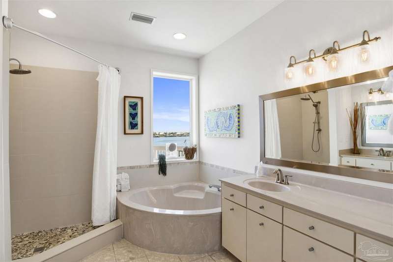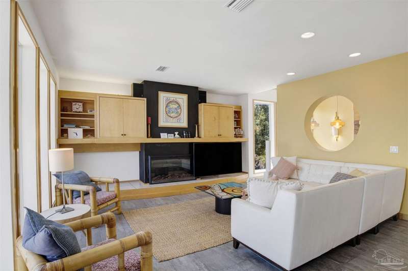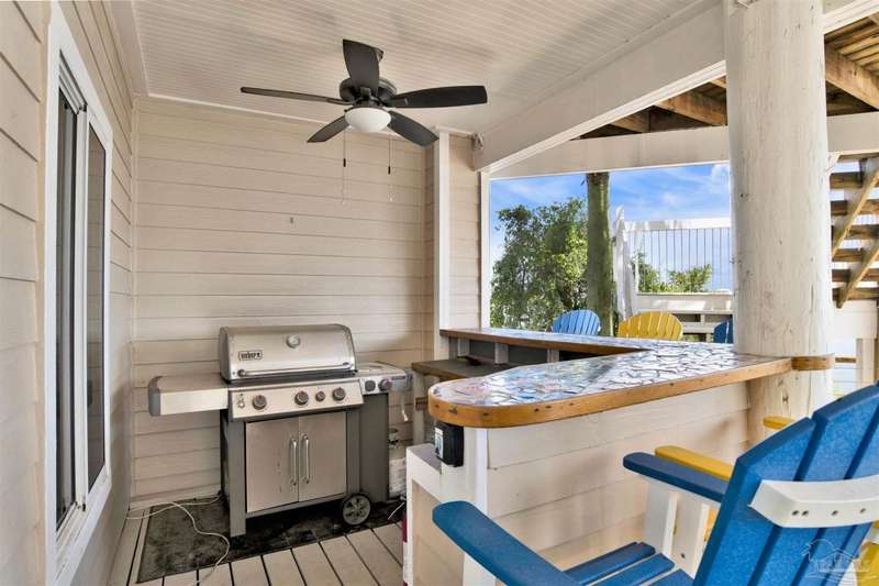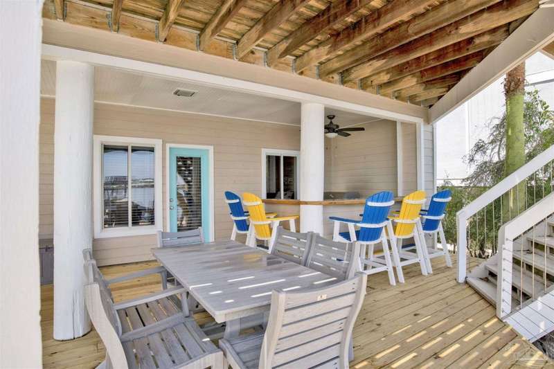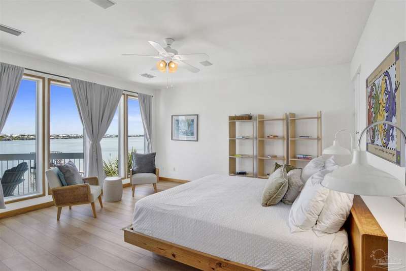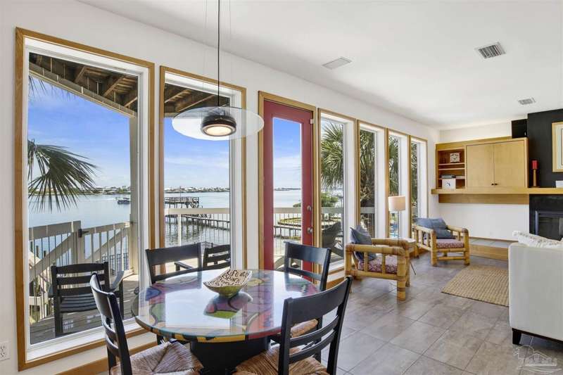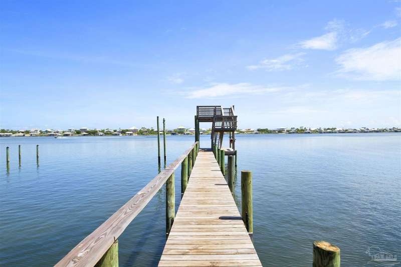 Rare Riverfront Home with Deepwater Pier, Boat Slip & Sundeck - Life on Old River at Its Finest! Welcome to Blue Heron, an extraordinary 5-bedroom, 5-bath riverfront residence designed by award-winning architect Marshall Fischrupp. This stunning architectural gem showcases exceptional craftsmanship-from the custom teak front door with its one-of-a-kind fish design to the dramatic two-story floor-to-ceiling windows in the dining area. The Great Room and Master Bedroom both feature breathtaking water views through expansive windows, opening onto riverfront decks that invite you to soak in the scenery. With water views from all three levels, this home evokes the feel of a luxurious yacht, perfectly designed to embrace its natural surroundings. The private pier leads to a deepwater boat slip with a spacious elevated sundeck and swim ladder, ready for you to launch into the sparkling waters of Old River. Whether accommodating your yacht or simply enjoying a refreshing dip, this property delivers the ultimate waterfront lifestyle. Enjoy the heated and cooled riverfront swimming pool, thoughtfully created for year-round comfort. Launch your kayak or paddleboard and explore the tranquil waters along the Florida State Preserve or around Ono Island. Located in the heart of Perdido Key, Blue Heron offers convenient access to fantastic neighborhood amenities, including community pickleball/tennis courts just across the driveway and deeded access to the sugar-white sands of the Gulf of Mexico across the street. The new multi-use path allows easy walking and biking across the island to explore local dining,and entertainment, shopping, parks, and attractions. Don't miss this rare opportunity to own a one-of-a-kind architectural masterpiece in Perdido Key Coves, one of the most coveted waterfront settings on the Gulf Coast!