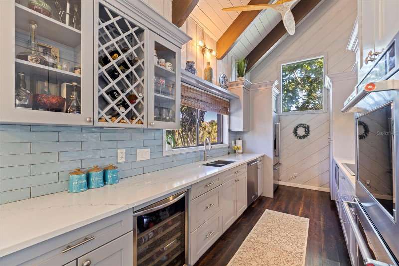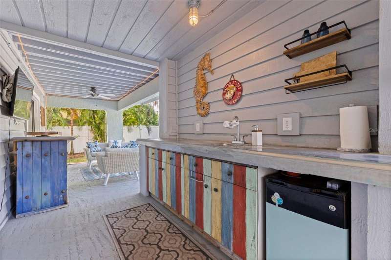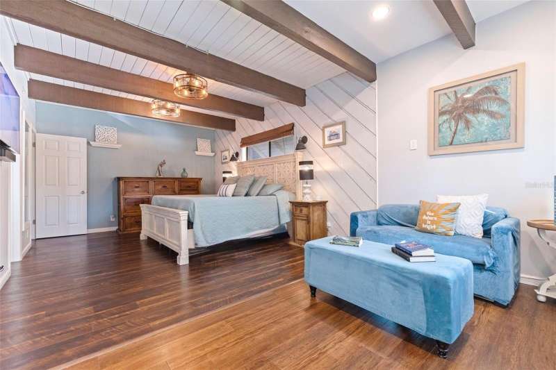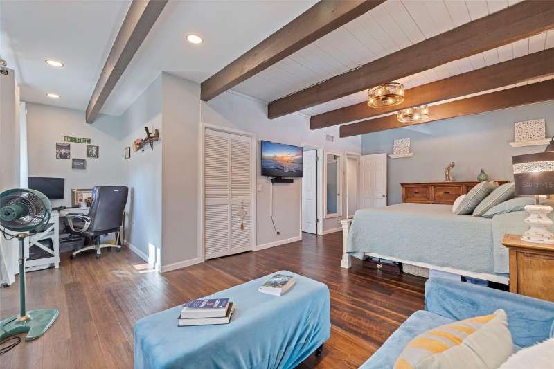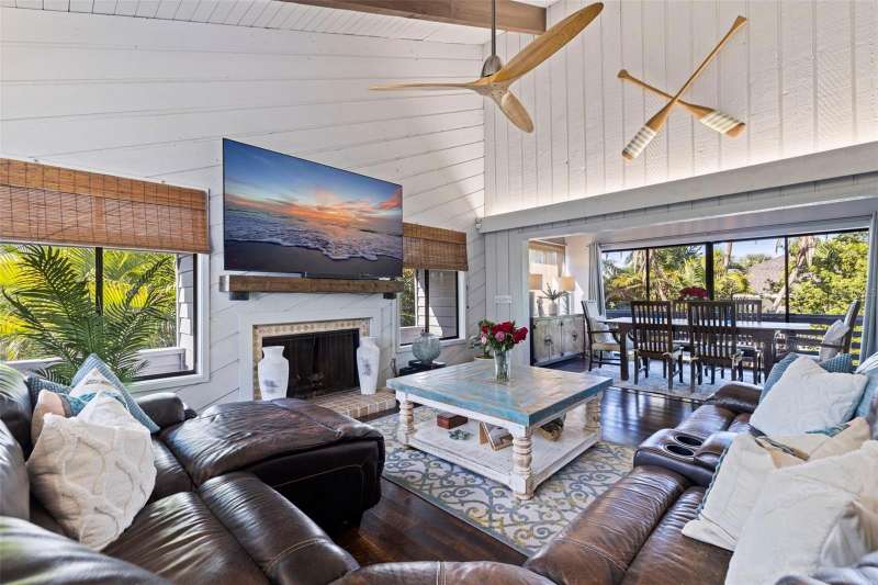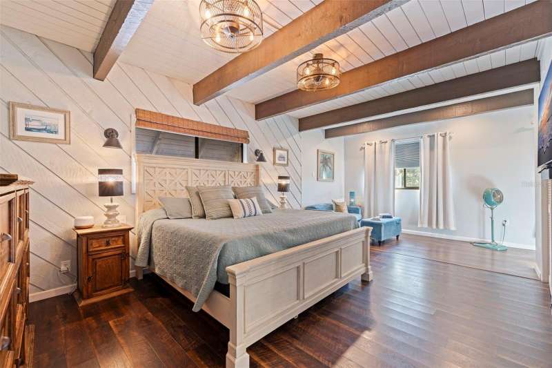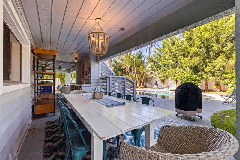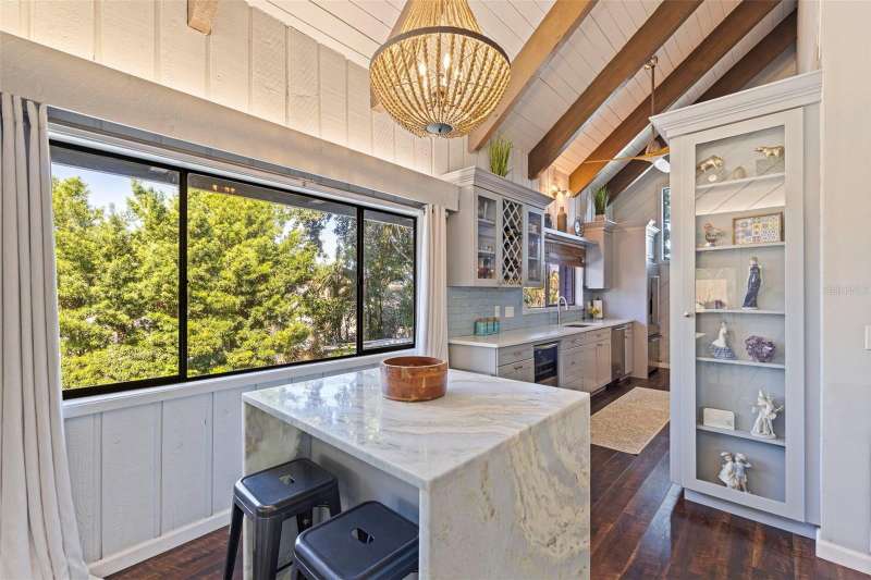 Experience true Florida living in this coastal, move-in ready, high & dry, two-story home located in Tierra Verde’s highly sought-after Sands Point neighborhood. Set in a quiet yet very vibrant and active waterfront community, this residence offers comfort, privacy, and peace of mind, having remained completely dry through the recent hurricanes. The welcoming, light blue front door opens to soaring ceilings with exposed beams, wood-look luxury vinyl floors, and abundant windows that fill the home with natural light. A sliding door connects seamlessly to the pool area, creating an easy indoor-outdoor flow. The main upper level offers a spacious living room featuring a wood-burning fireplace and a cozy formal dining corner, blending into the stunning updated kitchen. The kitchen showcases elegant countertops, ample cabinet space, and a sleek island that connects the dining and kitchen areas while offering convenient casual counter seating. Around the corner a spacious guest bedroom with dramatic ceilings, a full closet, and a beautifully updated bath. The expansive primary suite on the east side features an office nook or space to expand the already generous walk-in closet, plus a stunning ensuite bath with an oversized walk-in shower. The lower level is accessible via staircase and offers another private bedroom with ensuite bath. There is a bonus family/playroom with walkout access to the pool, and a two-car garage with laundry area, an additional refrigerator, water softener, and plenty of storage. In addition to the garage parking, the large driveway provides convenient space for multiple cars, perfect for extended family and guests. Out back, enjoy a fully fenced oasis with in-ground pool, ample space for entertaining, a setup ideal for an outdoor entertaining kitchen, plus a shed tucked in the corner for tools and water toys. The landscaping is low-maintenance, lush, and private, perfectly embracing the Florida lifestyle. This property is also ideally located—just a five-minute bike ride on the local trail to the sandy white beach of Fort DeSoto, and the dog park. Located less than 15 minutes to downtown St. Petersburg, with easy access to I-275 and only 40 minutes to Tampa International Airport. You’re also within walking distance to Island restaurants and local shops and many local fishing spots. Schedule your private showing today! Stylish, comfortable, and thoughtfully updated—this is a home that truly feels like home.