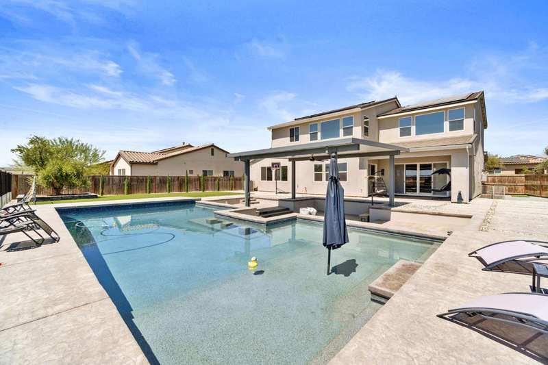 Large Price Improvement! Live the resort lifestyle every day in this stunning Wathen Castanos home, now offered at an exceptional new value. Designed to capture breathtaking views and filled with luxury amenities, this property delivers both sophistication and comfort.The private backyard oasis features a sparkling pool with a swim-up bar, perfect for entertaining or relaxing under the sun, all framed by serene, panoramic views. Inside, the thoughtfully designed 5-bedroom, 4-bath floor plan includes a gourmet kitchen with high-end appliances, generous counter space, and a seamless open layout ideal for gatherings.The expansive primary suite offers oversized windows, dual walk-in closets, and a spa-like bath with soaking tub and separate shower. Additional highlights include OWNED SOLAR with battery storage for energy efficiency, a smart home system for lighting, climate, and security, and a spacious three-car garage for ample storage.With its large price improvement and unbeatable combination of luxury, efficiency, and lifestyle amenities, this Riverstone gem is a rare opportunity.