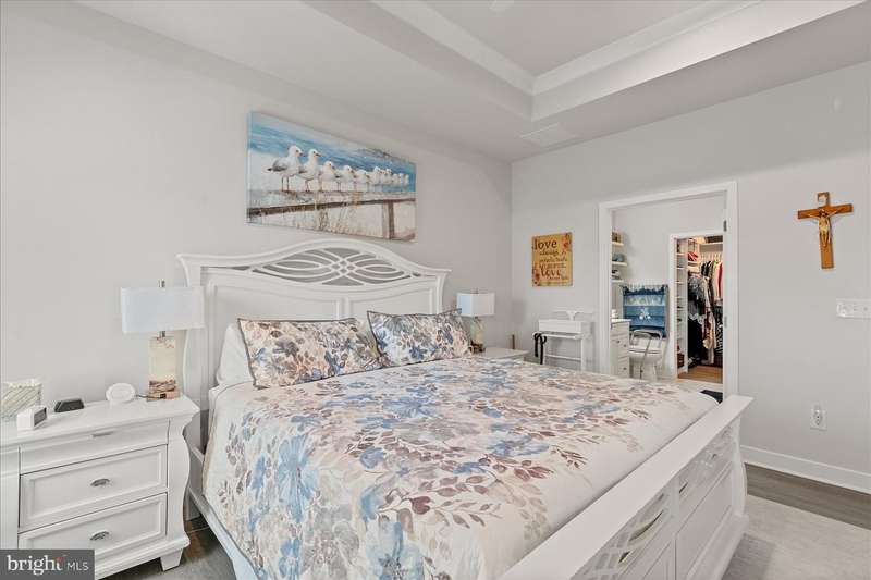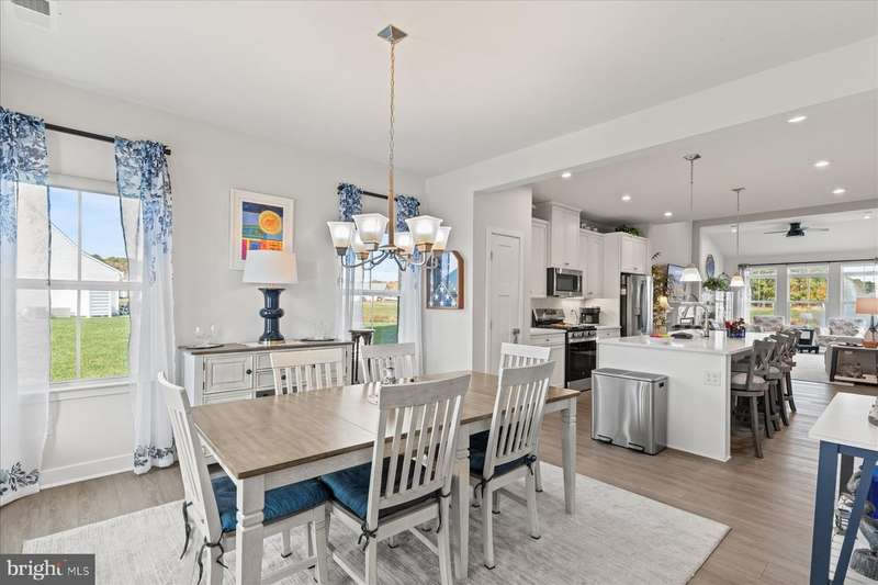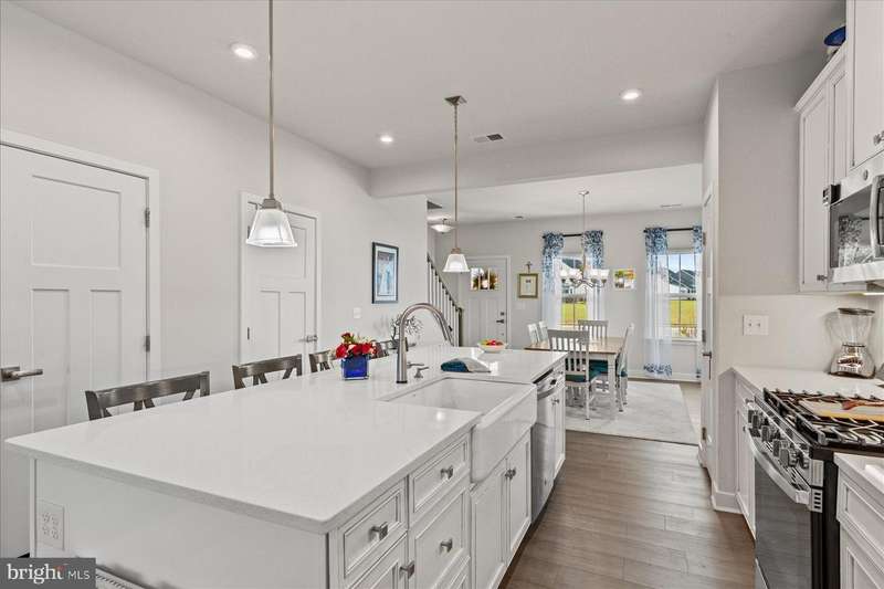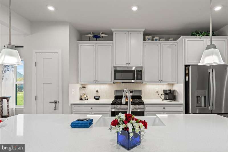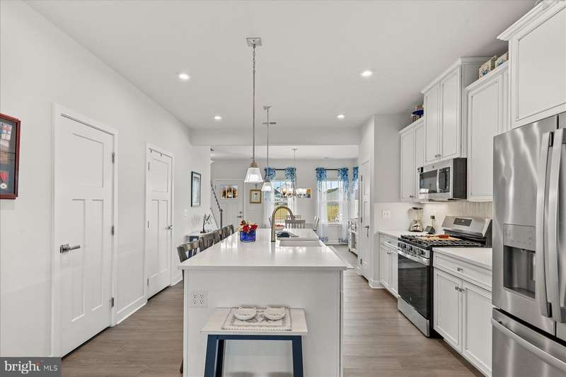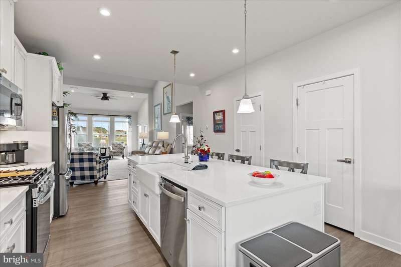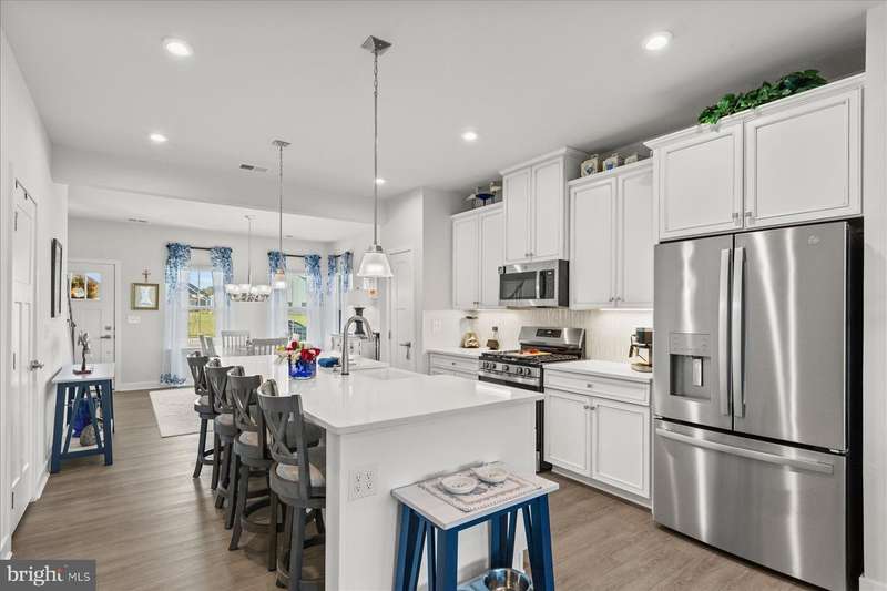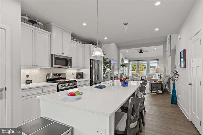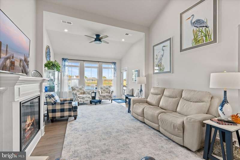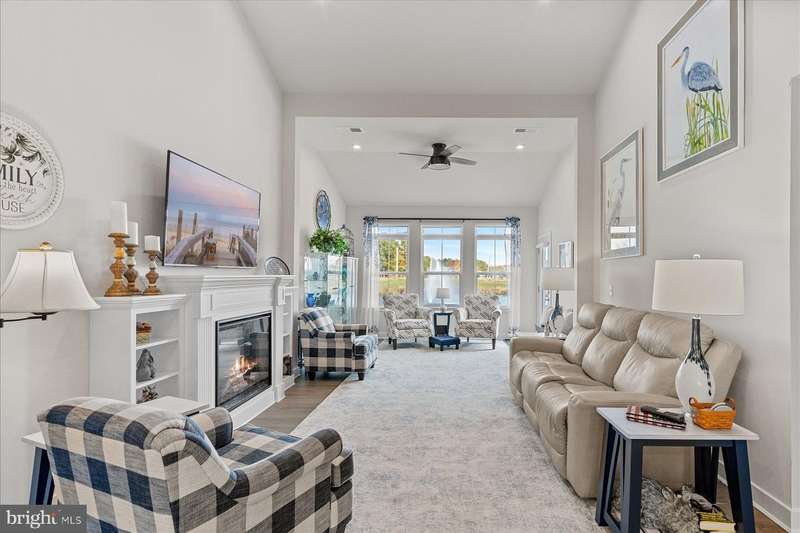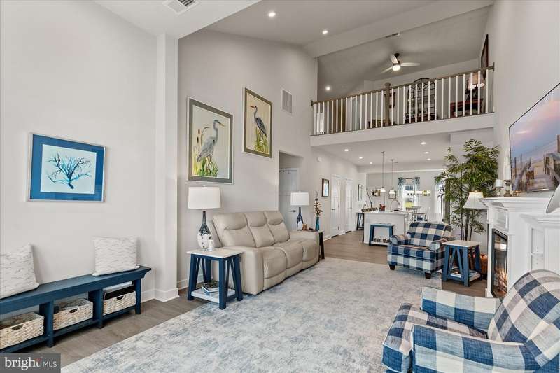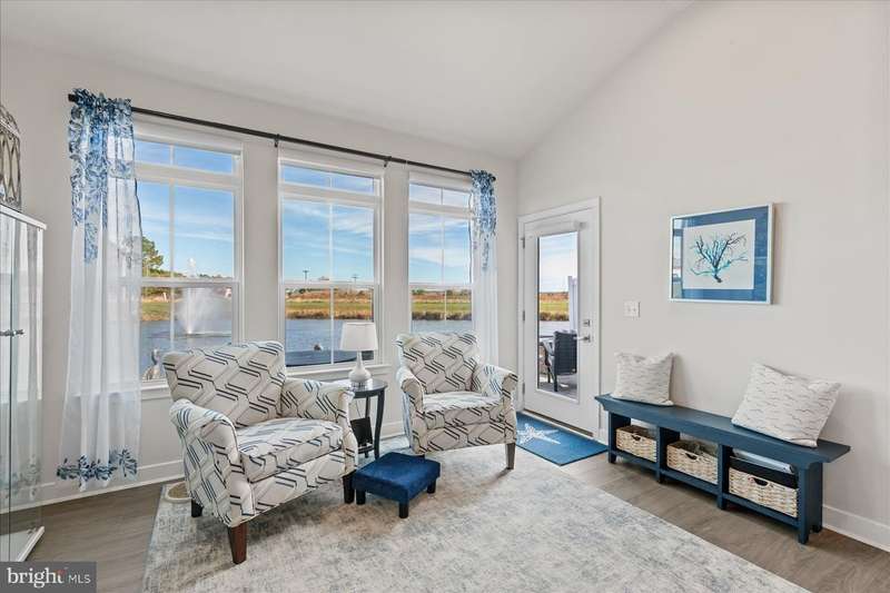 Welcome to this amazingly upgraded two-story twin villa perfectly situated on one of the ponds in the community of Atlantic Lakes, one of the region's most convenient coastal corridors. Seller is willing to provide a concession toward a mortgage interest rate buy down for the buyers with an acceptable offer! This meticulously maintained 3-bedroom, 2.5-bath home showcases exceptional details throughout. As you enter, a sun-filled foyer opens to an inviting dining area leading to a showstopper kitchen. The kitchen offers quartz countertops, stainless steel appliances, custom backsplash, upgraded cabinetry with pull-out shelves, the pantry is upgraded with wood shelving and pull-out shelves, and dimmable under-cabinet lighting. You will Be WOWED by the open-concept great room with soaring vaulted ceilings, creating a bright and spacious atmosphere. Luxury vinyl plank flooring extends throughout the entire first floor, including the primary suite, where you'll find a tray ceiling, motorized shades, a custom walk-in closet system, and a spa-inspired bathroom with double sinks and frameless glass shower doors. The sunroom, lined with motorized shades, bathes the living space in natural light and leads to a custom paver patio overlooking one of the community's scenic lakes and a beautiful fountain. Evening ambience comes alive with LED photocell-controlled lighting, perfect for relaxing or hosting under the stars. Additional upgrades include a fireplace with custom built-in bookcases, closet next to the half bath has been transformed for maximum storage, Wi-Fi-enabled ceiling fans, and stone landscaping replacing traditional mulch for a crisp, low-maintenance exterior. Upstairs, two spacious guest rooms and a versatile loft offer flexibility for a home office, den, or additional living area. Living here means enjoying maintenance-free landscaping and lawncare, giving you more time to explore the eight scenic lakes and resort-style amenities including a pool, fitness center, and community clubhouse. Located just minutes from the Delaware and Maryland beaches, Atlantic Lakes offers the perfect blend of community, convenience, and coastal charm.