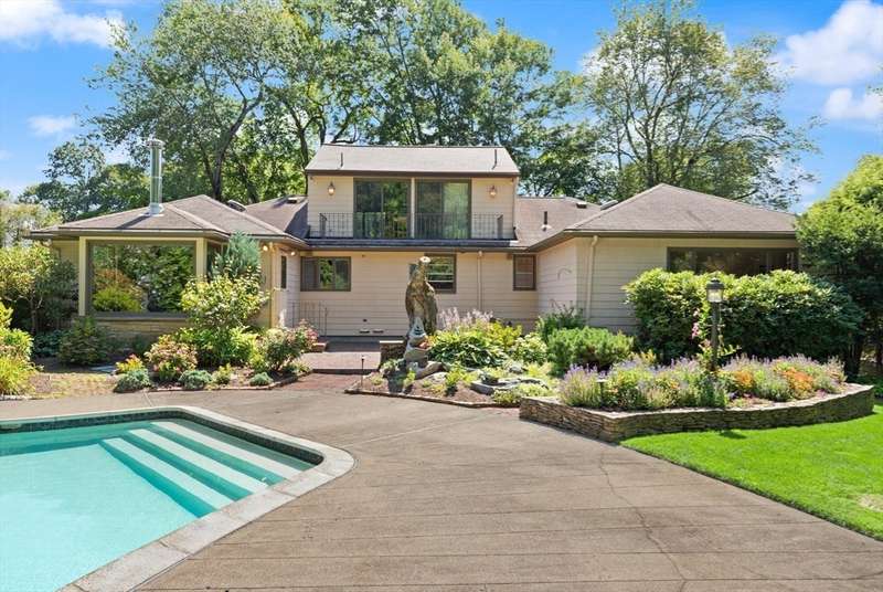 Step into timeless potential in this architecturally striking home, set on exquisitely landscaped grounds, in Belmont Hill, that feel like a private resort. From the marble foyer to the elegant step down living room with a marble fireplace, every detail offers the chance to craft something extraordinary. A custom built formal dining room, created for hosting on a grand scale, complements the flowing floor plan. The kitchen, informal dining, and family room overlook the lush rear yard and gunite pool, making entertaining seamless. The generous primary suite boasts a walk-in and additional closets, spa like bath with skylights, and serene garden views. Two more bedrooms with en suite baths, a stately office with fireplace, and a versatile upstairs loft with a balcony add to the appeal. The retro lower level adds personality or potential. The tropical feeling backyard is lush, private, and alive with birdsong. This is more than a home. It's a canvas waiting for your masterpiece.