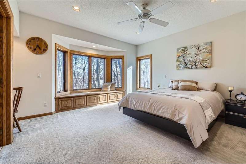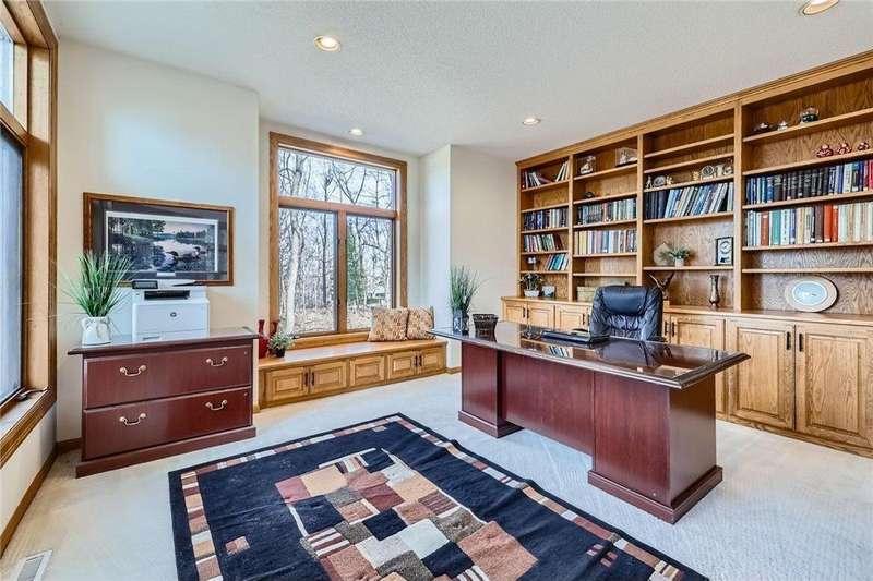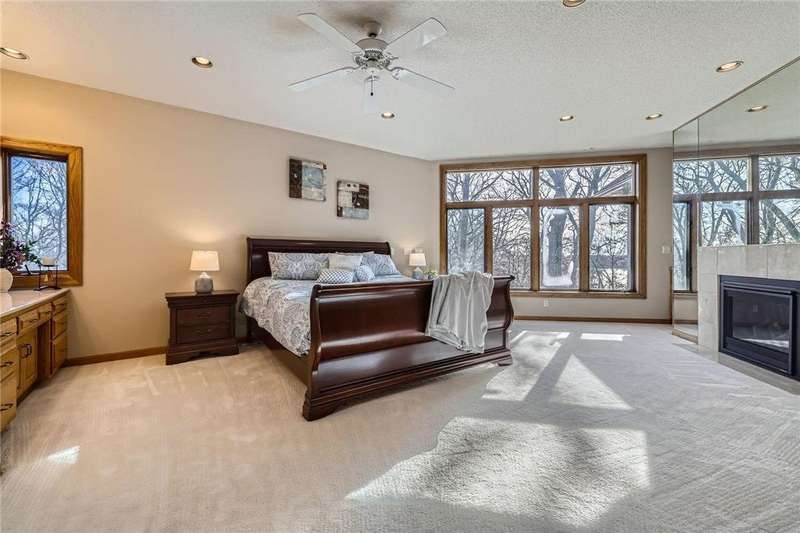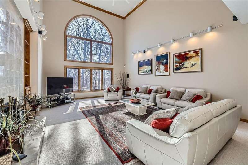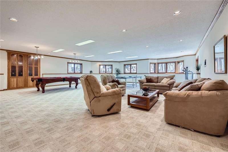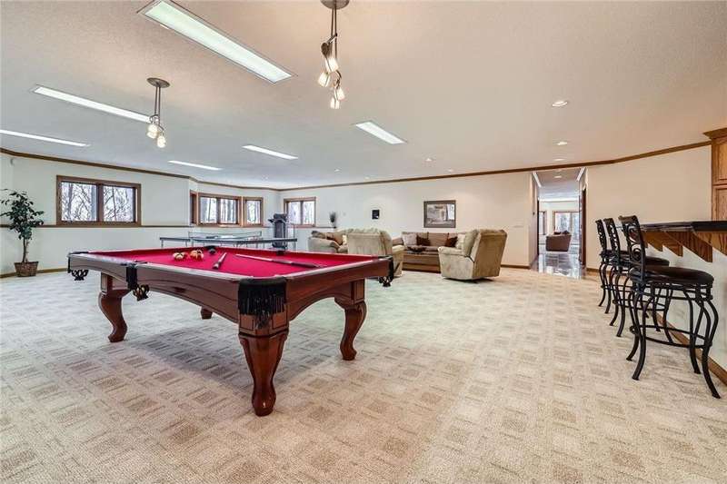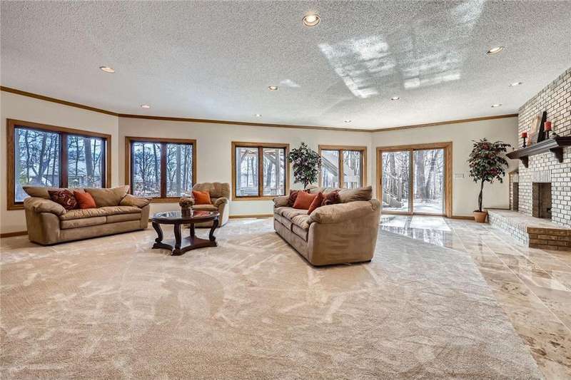 Custom-built one-owner home, nestled on a private wooded lot on the island of Pleasant Lake. Luxurious estate-style property on 1.6 acres with 6 bedrooms, 10 bathrooms, 10,306 square feet, and in the highly sought-after Mounds View School District. Featuring beautiful architecture with open-concept spaces that flow into one another. This exceptional property is grand and hotel-like with many amenities and ensuite bathrooms for every bedroom. Age in place with a main-level primary suite. Perfect home for entertaining and/or a multi-generational family!