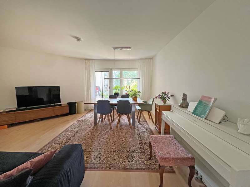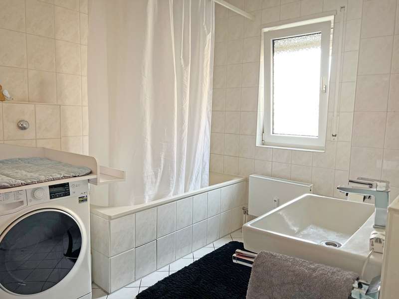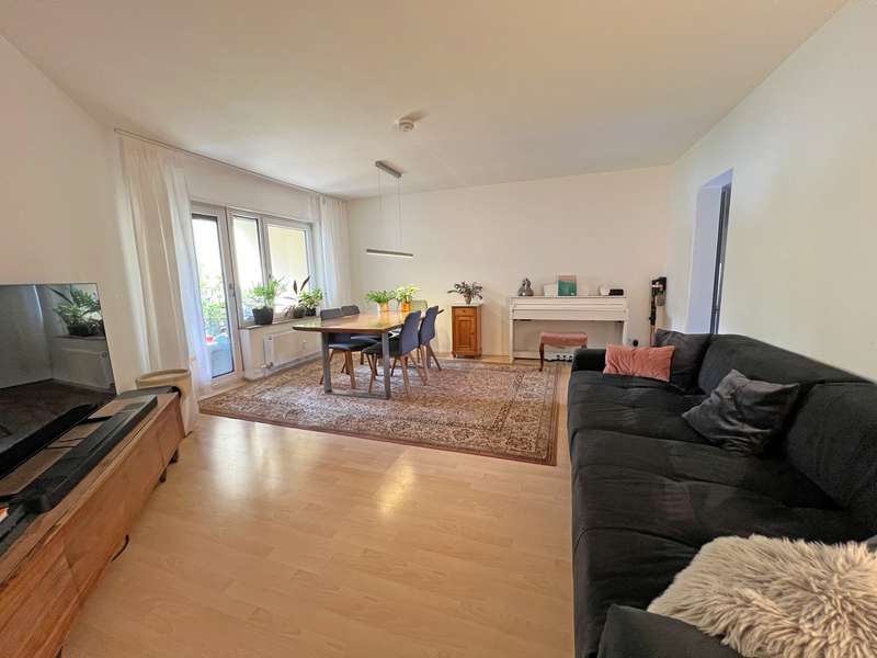 Welcome to your new home: This well-kept 3-room first floor apartment with a living space of approx. 80 m² offers you contemporary living in a quiet yet centrally located environment. Built in 1996, the property impresses with its successful room layout and modern furnishings, which were last extensively modernized in 2023. The heart of the apartment is the spacious living and dining area, which is pleasantly bright thanks to its large windows and invites you to linger. From here, you have direct access to your own terrace - a sheltered outdoor seating area that is ideal for relaxing outdoors. The terrace is surrounded by greenery and offers you plenty of privacy. The open fitted kitchen is functionally equipped and leaves nothing to be desired: Modern electrical appliances, generous work surfaces and ample storage space make cooking convenient. The laminate flooring in the living and sleeping areas gives the rooms a warm, friendly atmosphere and underlines the modern living concept. The apartment has two well-kept bedrooms that can be used flexibly as a master bedroom, children's room or home office. A particular highlight is the daylight-flooded bathroom, which has a bathtub and a washing machine connection. Here, too, emphasis was placed on attractive and practical fittings during the modernization. Another plus is the separate hobby room, which can be used in a variety of ways - as a fitness area, office or for craft hobbies. The apartment comes with two parking spaces in the nearby parking garage, allowing you to park conveniently and safely at any time. A drying room and a bicycle room are also available for communal use, making everyday life particularly practical. In summary, this modern, well-maintained first floor apartment offers you an attractive overall package consisting of a well thought-out room concept, pleasant brightness, high-quality furnishings and practical extras. Come and see the many advantages of this property for yourself at a personal viewing appointment. We look forward to hearing from you!