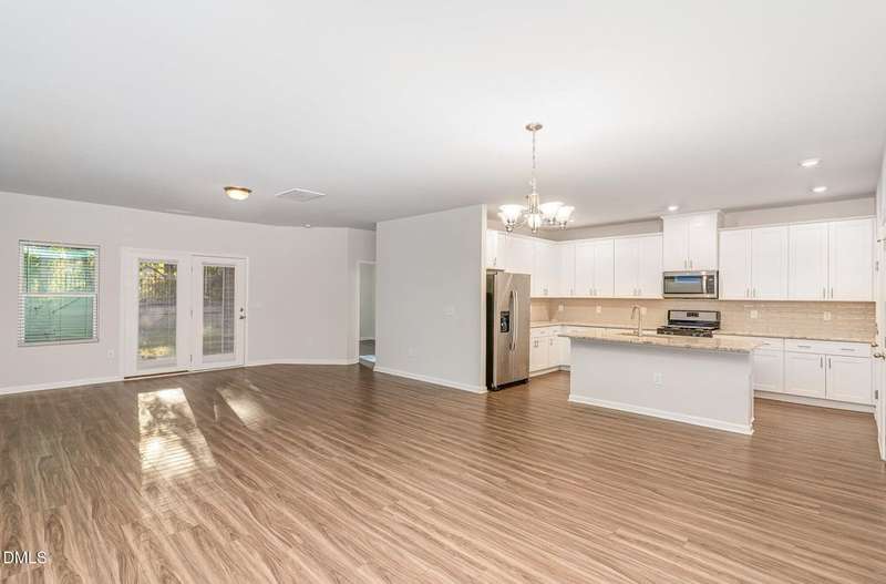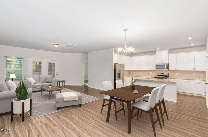 Welcome to this stunning 4-bedroom, 3-full-bath single family home located in the desirable Brighton Station community of Durham. The main level features wood-look flooring, a spacious living room that opens to a modern kitchen with white cabinetry, granite countertops, a large center island, tile backsplash, stainless steel appliances, including refrigerator and a walk-in pantry.The dining area flows seamlessly into the spacious living space, leading to a covered patio and private backyard - perfect for entertaining or relaxing. Upstairs, you'll find three additional bedrooms, including a primary suite with a walk-in shower, double vanity, and large walk-in closet.Located just minutes from Downtown Durham, Raleigh, I-540, U.S. 70, Freeway 147, RTP, Duke University, and shopping, this home offers both comfort and convenience.