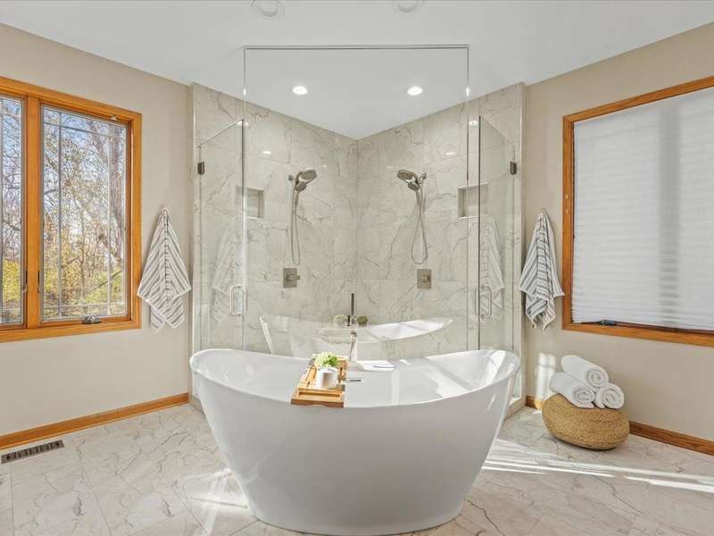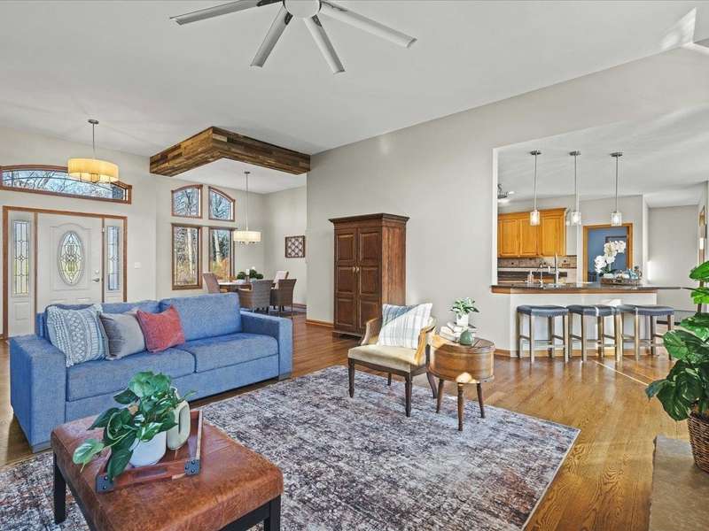 Your next dream home awaits! This stunning ranch offers luxury, privacy, and breathtaking natural surroundings on over 1.5 acres, backed by the serene Beaver Creek. Enjoy an open floor plan with abundant partial southern exposure, filling the home with natural light and enhancing outdoor living on the brick paver patio and new composite deck. The spacious primary suite features a tray ceiling, custom blinds on order, and a new spa-like ensuite with double showerheads, dual sinks, and two walk-in closets—one with a dedicated dressing room. The gourmet kitchen includes an inviting dining area and connects seamlessly to a formal dining space for effortless entertaining. A versatile office provides the ideal setup for remote work or creative pursuits and can also serve as a fourth bedroom (no closet). Renovated half bath. Daily living is simplified with a well-designed first-floor laundry/drop zone. Car enthusiasts and hobbyists will love the expansive 4 car garage with ample room for storage, tools, or recreational gear. Additional highlights include newer roof and siding and a full basement with impressive 9.5 foot ceilings and a rough-in for an additional bathroom offering endless possibilities for future expansion. Don’t miss the opportunity to own this exceptional property there’s so much more to see!
