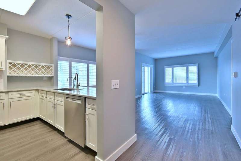Sought after Corner Unit with 2 Bedrooms, 2 Full Baths & Loads of Closet Space. Updated Kitchen with White Cabinets, Quartz Countertops and Stainless-Steel Appliances. Primary Suite with Updated Private Bath and Walk-In Closet. Vinyl Plank Flooring Throughout. Lovely Balcony off the Living Room. Two Indoor Parking Spaces and a Dedicated Storage Unit. Downtown Elmhurst Location.