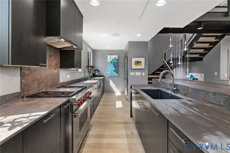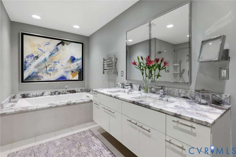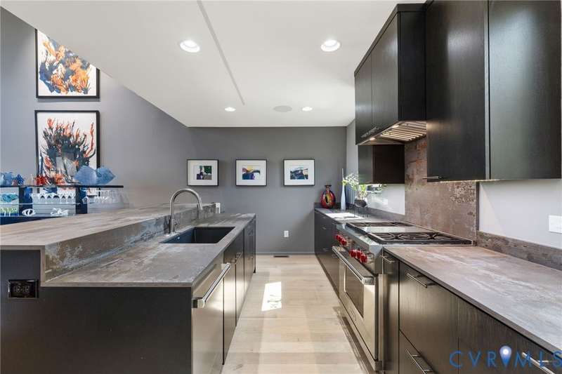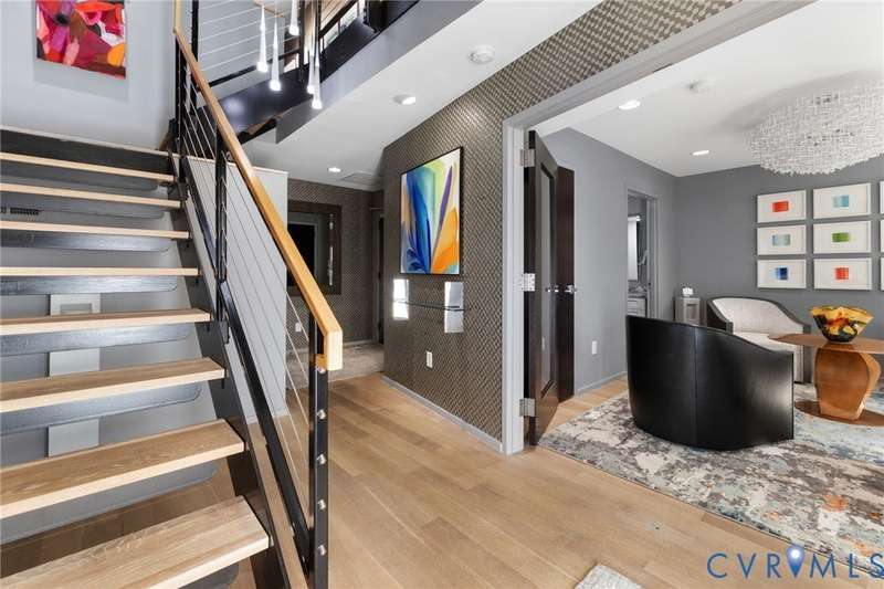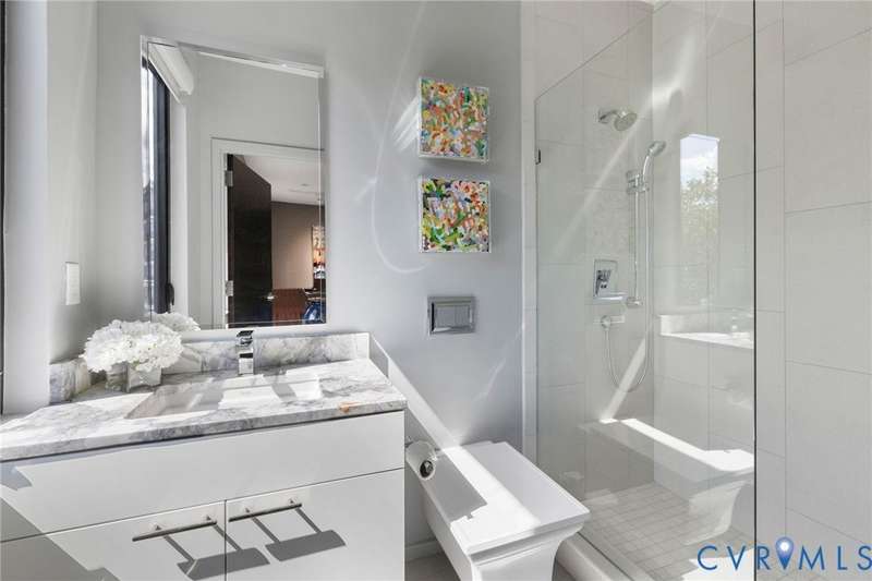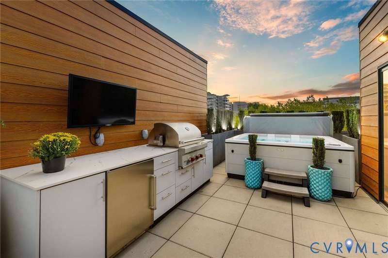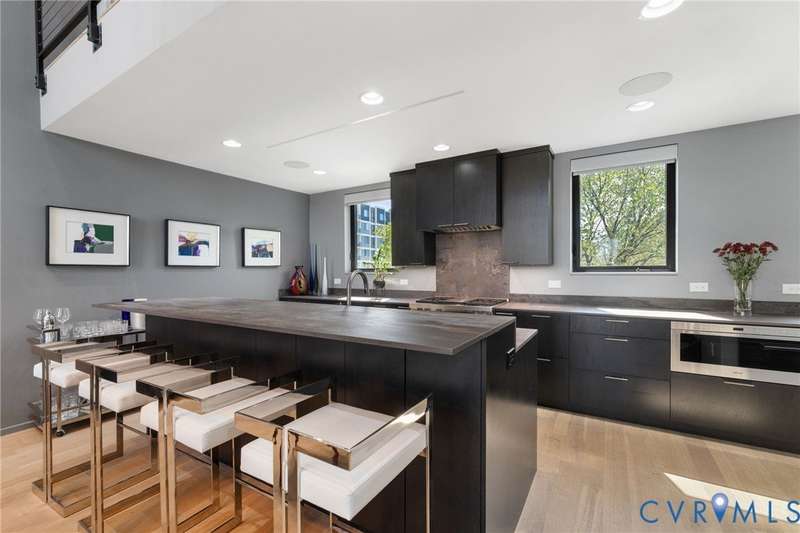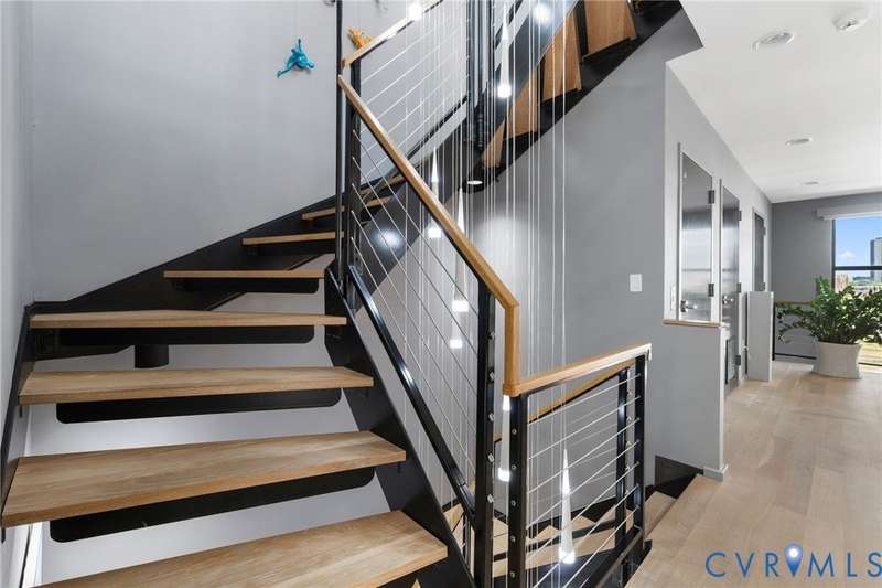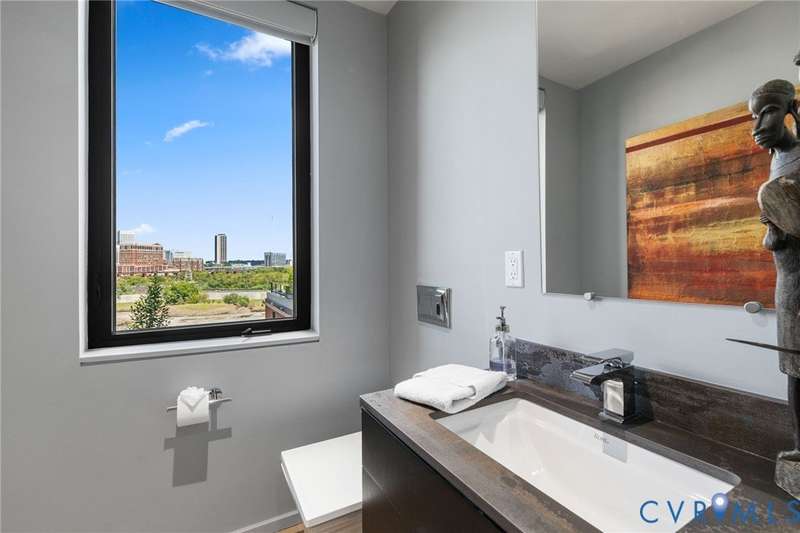 Welcome to 7 West Townhomes, where architectural vision by Mario DiMarco Architects, merges the industrial heritage of Manchester with modern sophistication. Walls of glass showcase unobstructed views of the James River and downtown Richmond skyline, connecting each level to the vibrant city beyond. Enter through a private two-car garage, then ascend via private elevator or the dramatic floating staircase. This five-level residence offers three bedrooms and five baths, including a serene owners' suite with dual spa-like shower, soaking tub, towel warmer, private terrace, and custom walk-in closet. Meticulously curated finishes include solid white oak flooring, natural stone countertops, custom cabinetry, bespoke lighting, a 60""Â? linear fireplace, and TV's hidden by artwork! Venture up to the Mezzanine level and sit around the baby grand player piano, sending music throughout the 2-story living room below. The Chef's kitchen and butler's pantry, along with the rooftop kitchen, all feature Wolf and Sub-Zero appliances for seamless hosting. Smart home features include Control4 automation and Lutron motorized window treatments throughout. Everyday spaces, even the laundry and powder room, offer skyline views. Crowning the home is a private rooftop oasis with landscaped entertaining areas, outdoor kitchen and bar, Firepit table, and HOT TUB, all against sweeping sunset views of downtown. Steps from Stella's Manchester, Legends Brewing, The Continental, Brown's Island, and the James River Park System, this distinctive residence offers unmatched walkability and exclusivity. Industrial. Elegant. Connected.