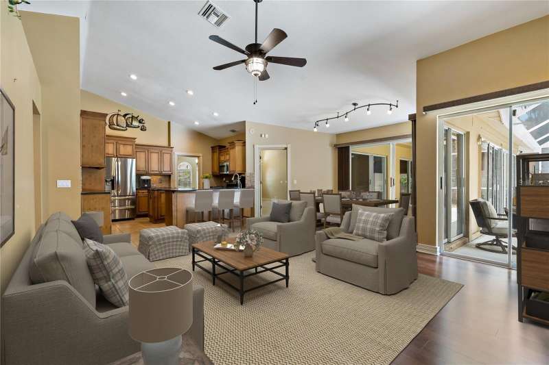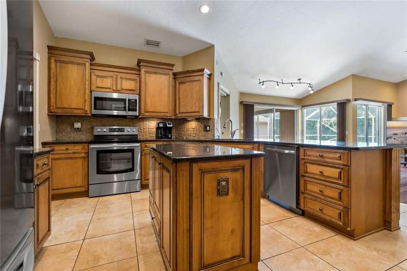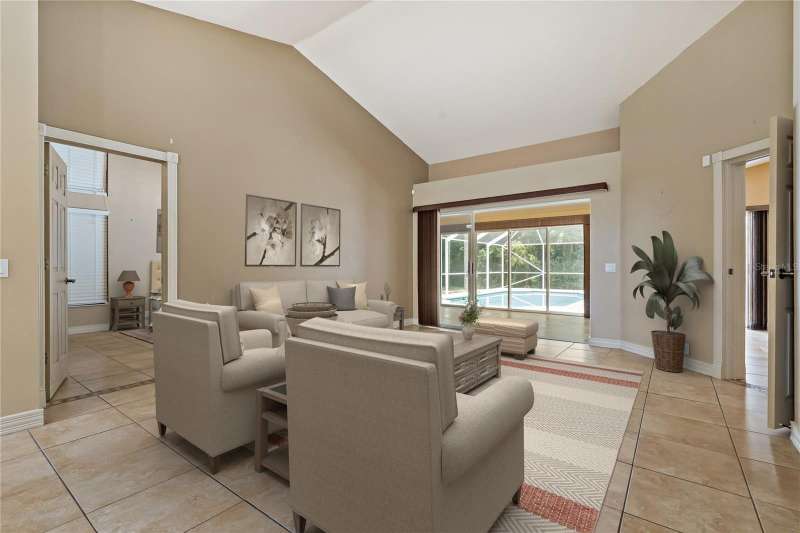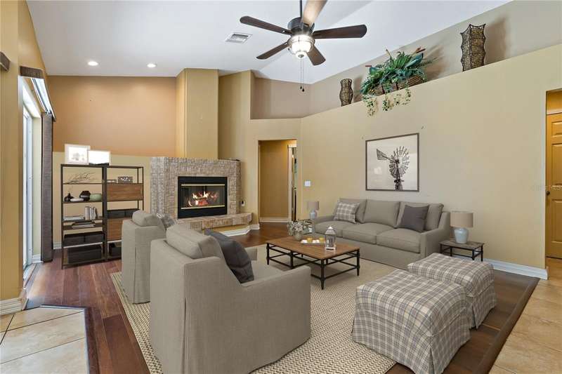 Under contract-accepting backup offers. One or more photo(s) has been virtually staged. MAJOR PRICE IMPROVEMENT!! Freshly painted & ready for a new roof of your choice! The seller has a signed contract with a roofing company to install a brand-new roof prior to closing, with the option for the buyer to select the shingle color. Inside, the home shines with a freshly painted interior, giving every space a crisp, inviting feel. Welcome to 2,481 square feet of Florida comfort and style in the highly desirable Wyndtree community! This 4-bedroom, 3-bath executive-style pool home is tucked away on a peaceful conservation lot with no rear neighbors, offering the perfect blend of privacy and convenience. Step inside and you’ll find bright, open spaces enhanced by vaulted ceilings and elegant design. The formal living and dining rooms create an ideal setting for entertaining or quiet evenings at home. A wood-burning fireplace in the family room adds warmth and charm year-round. The kitchen is a true centerpiece, featuring solid wood cabinetry, sparkling granite countertops, a spacious island, and newer stainless steel appliances. The open design connects seamlessly to the family room, making gatherings and conversations effortless. The smart triple-split floor plan offers comfort and privacy for all. The primary suite is a private retreat with a walk-in closet, dual sink vanity, soaking tub, and a large walk-in shower with seamless glass enclosure. Sliding doors open to the Florida Room, offering a perfect spot to enjoy morning coffee or evening breezes. Bedroom 2 features its own nearby bath and direct backyard access—great for guests—while Bedrooms 3 and 4 share a stylish Jack-and-Jill bath. The expansive Florida Room connects nearly every part of the house, leading out to the screened-in patio with brand-new screens and freshly painted enclosure. Take a dip in the heated saltwater pool while enjoying serene conservation views—your own backyard oasis. Additional highlights include a 3-car garage with 220-volt outlet ready for EV charging, hurricane shutters, a full Vivint alarm system, and lawn service prepaid through 2025. Living in Wyndtree means being just minutes from shopping, dining, golf, and parks. Explore nearby favorites like Seven Springs Shopping Center, Fred Howard Park Beach, and the Tarpon Springs Sponge Docks. With easy access to Highway 589/Veterans Expressway, downtown Tampa and the airport are only a short drive away. This home blends everyday comfort with resort-style living. Schedule your private tour and discover all the reasons you’ll want to call it home and start Living Your Best Florida Lifestyle Today!!
