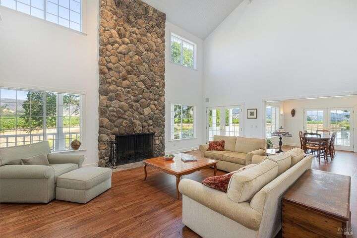 1650 Aetna Springs Road presents an exceptional opportunity to experience the best of Wine Country living on 6.1 acres in the scenic beauty of Pope Valley. Perfectly located among vineyards, rolling hills, and serene open space, the property enjoys a coveted setting just minutes from the Napa Valley floor. The 3,696 sq ft residence is thoughtfully designed for both comfortable everyday living and effortless entertaining, with expansive windows that frame sweeping vineyard and lake views. Generous living areas flow seamlessly to inviting outdoor terraces, creating ideal settings for al fresco dining, gatherings, or quiet reflection amid the tranquil landscape. Adding to the appeal, approximately 2.8 acres of premium Cabernet Sauvignon vines produce highly regarded fruit that ties the estate to Napa Valley's celebrated wine culture. This versatile property is perfectly suited as a family compound, boutique vineyard, or private lifestyle retreat, offering a rare balance of natural beauty, income potential, and proximity to world-class wineries and amenities. For those seeking additional scale, the adjoining 60.4 acre vineyard property is also available for purchase at $5,266,000.