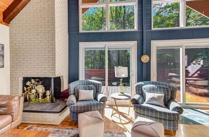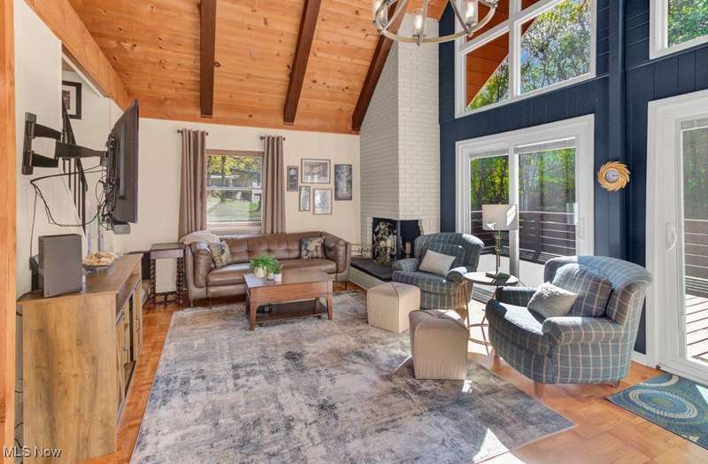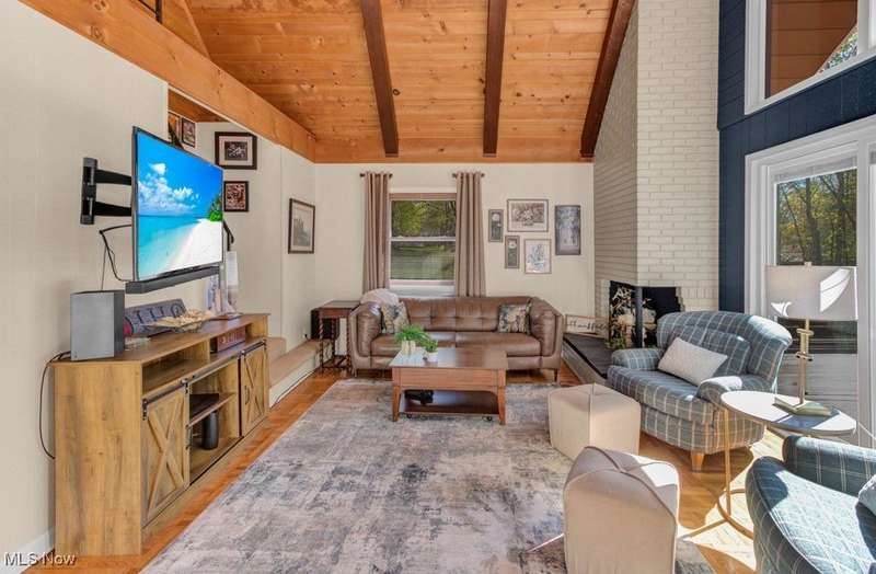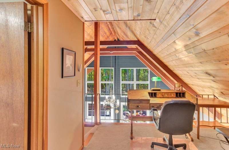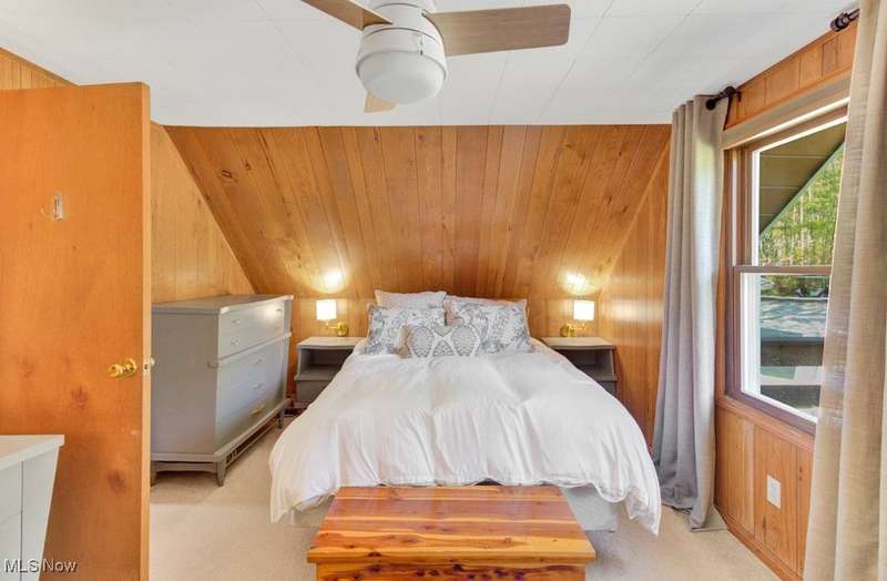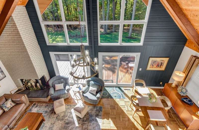 Welcome to your Lake Mohawk retreat! This stylishly remodeled A-frame sits on two lots bordering association property?offering a perfect blend of privacy, charm, and modern comfort. Step inside to find soaring cathedral ceilings and a bright, open layout that captures the essence of lake living. The updated kitchen features newer appliances including a dishwasher (2023) and refrigerator (2019/2020), seamlessly connecting to the dining area and spacious living room with newer sliding doors leading to the expansive deck?repainted in 2020 and ideal for entertaining or simply soaking in the peaceful setting. The main level offers two generous bedrooms and a beautifully remodeled full bath (2023). Upstairs, the inviting loft currently serves as an office, with a convenient laundry area and half bath, plus a comfortable bedroom with double closets and a private balcony for morning coffee or evening stargazing. This home is truly turn-key with newer carpet throughout (2024), solid interior doors, and mechanical updates including a gas furnace and central air (2023), updated electric panel, and a newer garage roof (23 years). The three-car detached garage (approx. 15 years old) offers plenty of space for vehicles, lake toys, and storage. Experience lake life at its finest?modern, move-in ready, and full of character?Enjoy all that the private, gated community of Lake Mohawk has to offer, including a 500-acre unlimited horsepower lake, three scenic beaches, an executive 9-hole golf course, tennis & pickleball courts, and so much more!