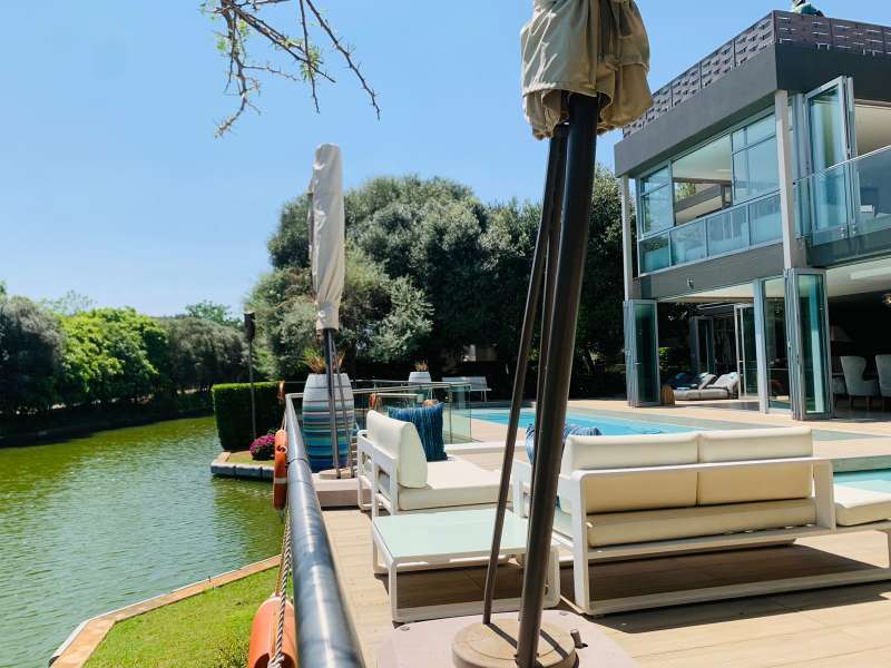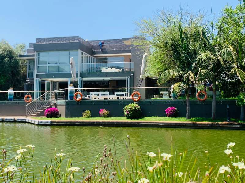 Discover unparalleled luxury living, in the serene and picturesque Islands Estate, with this exquisite 6-bedroom modern mansion. Nestled along a tranquil canal, this home offers a perfect blend of contemporary design, opulent amenities, and breathtaking natural beauty. Property Features: Contemporary Design: Architectural elegance and sleek lines define the facade and interior spaces of this modern mansion. Spacious Foyer: A grand entrance foyer sets the tone for luxury as you step into this stunning residence. Open Floor Plan: The open floor plan enhances the sense of space and connectivity throughout the living areas. Living Room with Canal Views: The expansive living room features floor-to-ceiling windows overlooking the canal, bathing the interior with natural light and offering stunning water views. Gourmet Kitchen: A culinary delight with state-of-the-art appliances, a center island, and stylish cabinetry, seamlessly connected to a formal dining area and outdoor terrace. Outdoor Oasis: An expansive terrace overlooks the shimmering infinity pool, blending harmoniously with the canal, perfect for outdoor dining and relaxation. Private Outdoor Spaces: Lush landscaping and mature trees surround the property, providing privacy and a serene environment. Entertainer's Delight: Outdoor amenities include a barbecue area, outdoor lounge, and an elegantly designed pool, creating a perfect setting for entertaining guests. Security: Located in the Islands Estate with 24-hour security, ensuring peace of mind and exclusivity. Islands Estate: The Islands Estate is renowned for its tranquil ambiance, and exclusive waterfront properties, offering residents a secure and luxurious lifestyle. This modern mansion epitomizes waterfront living at its finest, combining contemporary architecture, with the serenity of canal-front views, making it a true gem in Hartbeespoort's real Estate market. Experience the epitome of luxury living~~schedule your viewing today...!!