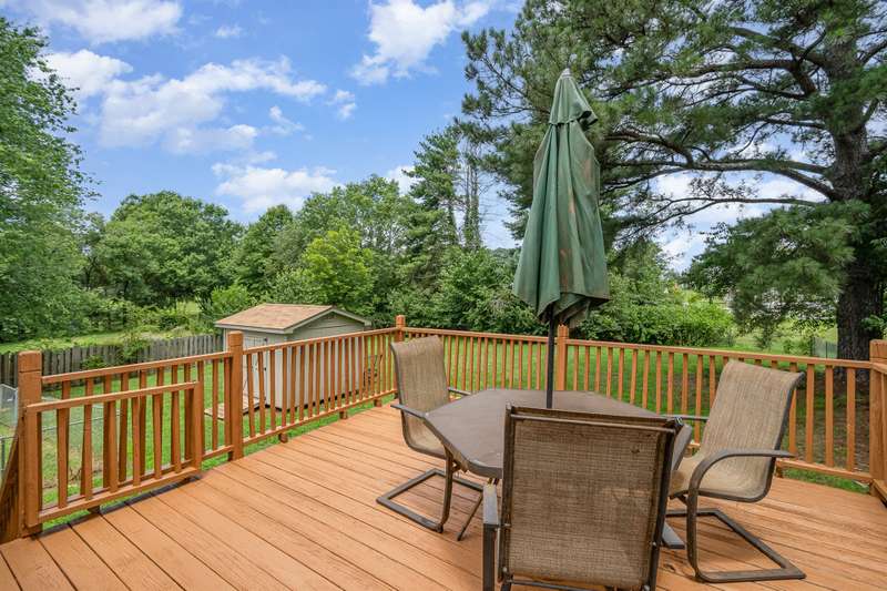 **MOTIVATED SELLERS are offering $6500 toward closing costs with acceptable offer!**Welcome to your move-in-ready retreat on nearly half an acre, tucked on a quiet dead-end street just minutes from I-40! This thoughtfully updated 3-bed, 2-bath home blends peaceful living with everyday convenience, offering over 2,000 sq ft of flexible space designed to fit your life. Inside, you'll find fresh paint, a custom solid oak staircase, and a finished basement with a cozy fireplace den, home office, and oversized 2-car garage. Whether you're working remotely, entertaining, or need space for hobbies, teens, or guests, this home delivers.The kitchen shines with new, smart stainless appliances, LVP flooring, and opens to a freshly stained deck and fenced backyard. A custom storage building is perfect for tools or a workshop. Bonus: The basement has private garage access?ideal for multigenerational living or your own getaway.AHS Home Warranty included for peace of mind.