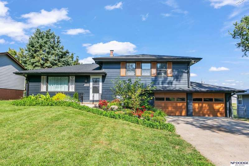 Nestled within a quiet enclave in Northwest Omaha is an amazing home! Situated on a larger, south-facing lot , this home features 5 bedrooms with 3 bathrooms with 4 finished levels. Beautiful living room with loads of natural light and a great sized dining area. Three bedrooms with two updated bathrooms on the 2nd level with newer carpeting. Two additional bedrooms on and bathroom on the lower level. Plus, a finished basement. Fresh landscaping in the front and an oversized fenced-in backyard, perfect for anything fun activities. Property sold as-is. Square footage AMA.