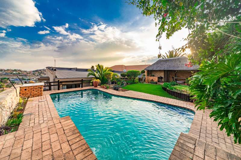 Discover a home where elegance, space, and breathtaking views unite to offer you an unparalleled lifestyle. Positioned in the best location in Oakdene, this magnificent 4-bedroom, 3-bathroom property is the epitome of modern family living. With every detail designed for comfort and style, this home will exceed your expectations. Step inside the open-plan kitchen, where sleek granite countertops and a welcoming breakfast bar create the heart of the home. Flow seamlessly from the kitchen into the dining room, T.V room, and lounge, perfect for entertaining or relaxing. For the little ones, a dedicated kids?ÇÖ playroom opens onto a balcony that offers stunning, unobstructed views- an absolute showstopper. Retreat to the outdoors where a thatched lapa overlooks your sparkling swimming pool, making it the perfect spot for family gatherings and summer braais. For movie nights or entertaining friends, the downstairs cinema room awaits. With double garages, extra parking space, and the convenience of staff accommodation, every practical need is met. This home offers the rare combination of luxury, space, and an unbeatable position in Oakdene, with views that are simply special. Don?ÇÖt miss this extraordinary opportunity to elevate your lifestyle to new heights- your dream home is here, waiting for you!