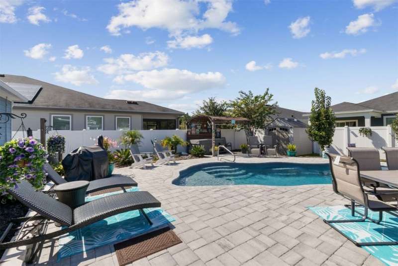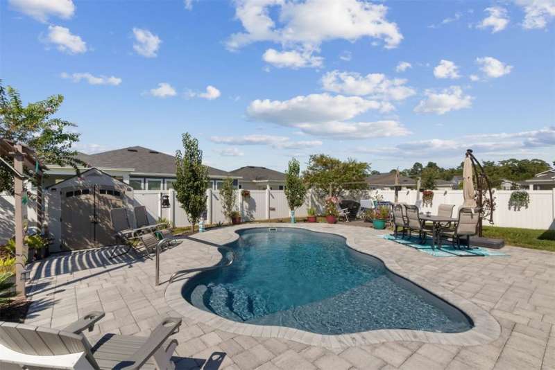 Luxury, Comfort & Your Own Florida Oasis! Why wait to build when this move-in ready 2020 home has it all? With 4 bedrooms, 2 bathrooms, and 1,882 sq. ft. of stylish living space, every detail has been thoughtfully designed for both everyday comfort and effortless entertaining. Inside, youll find hardwood-style tile floors and a spacious Granite kitchen island that serves as the perfect centerpiece for cooking, gathering, and creating lasting memories. The garage also features a dedicated electric vehicle (EV) charging plug?ready to power your eco-friendly ride with ease. Step outside and prepare to fall in love. Your backyard feels like a private resort, featuring a heated & cooled saltwater pool (less than two years new), hot tub, outdoor shower, and screened lanai?all surrounded by a privacy fence for total seclusion. A beautifully manicured lawn completes the outdoor oasis, with a screened front porch adding even more charm and year-round enjoyment. Located just 10 minutes from JAX Airport and minutes from Baptist Hospital, shopping, dining, and more?youll enjoy the perfect blend of accessibility, low-maintenance living, and modern luxury. Dont miss your chance to own this slice of paradise?schedule your showing today!