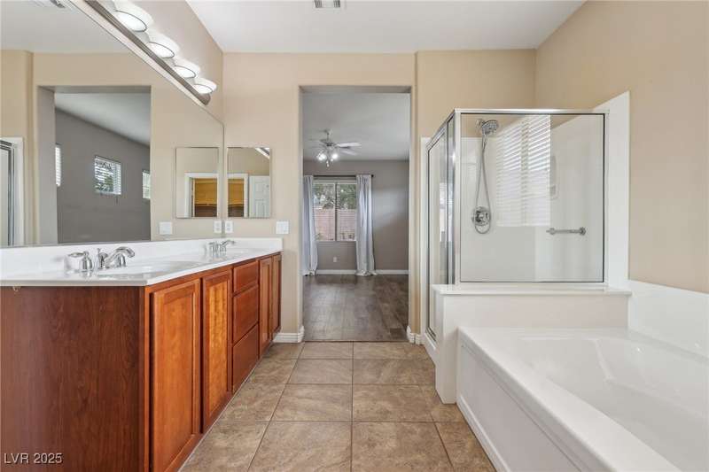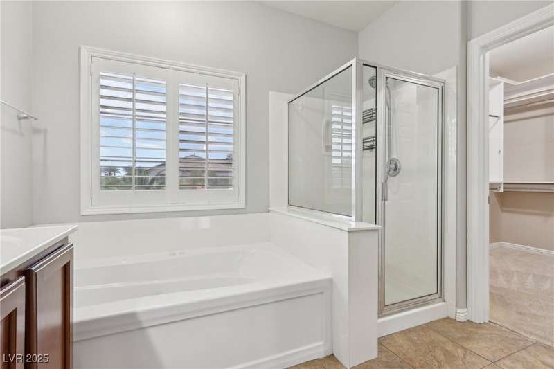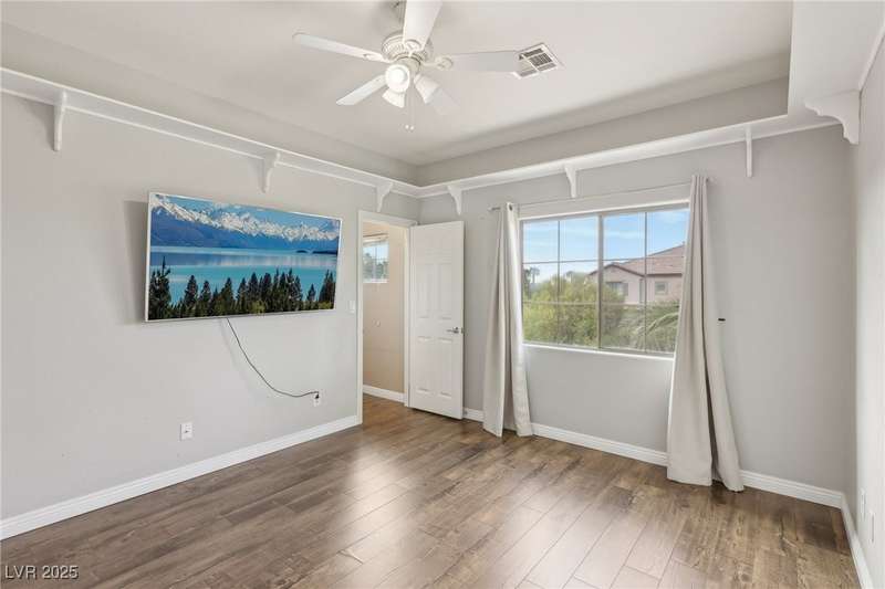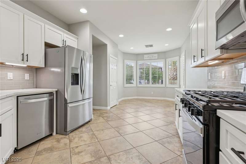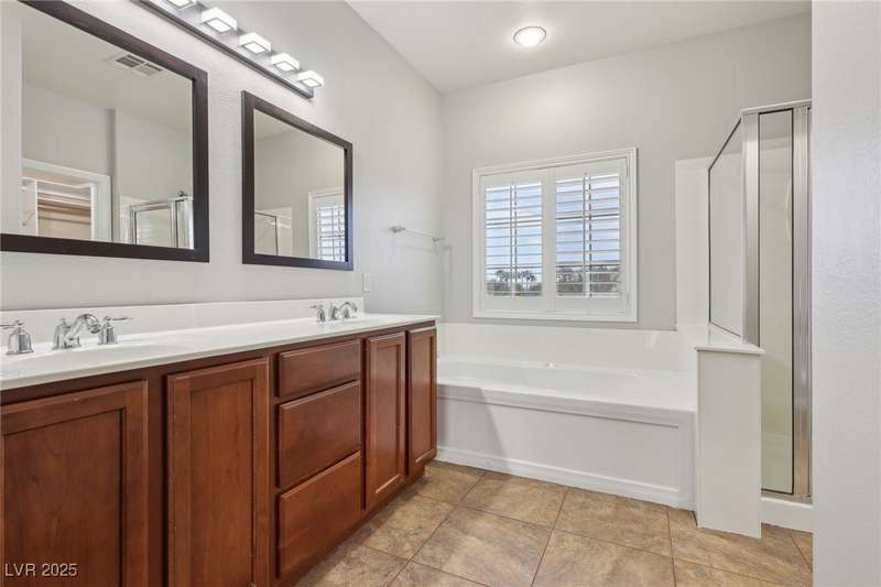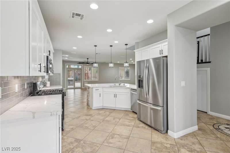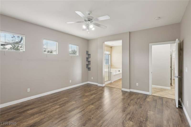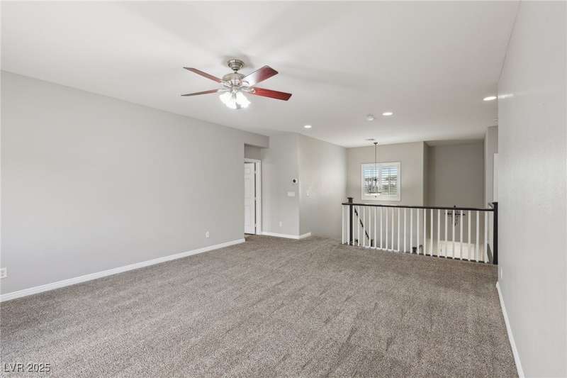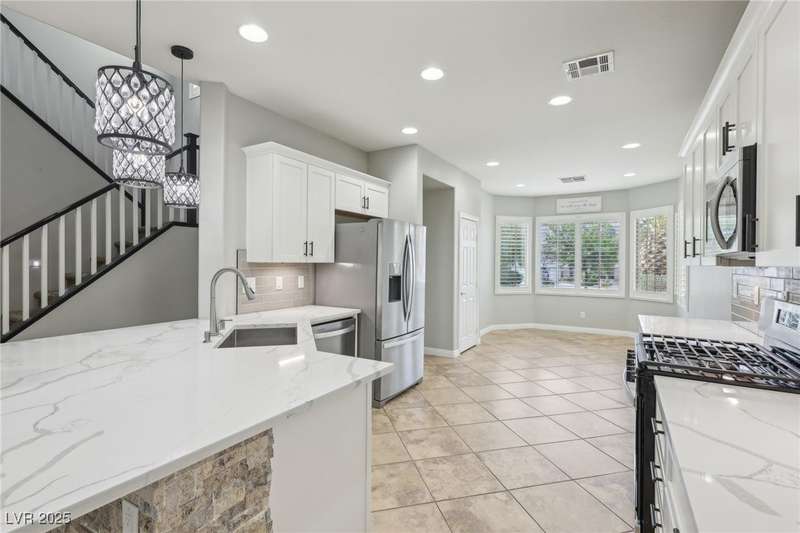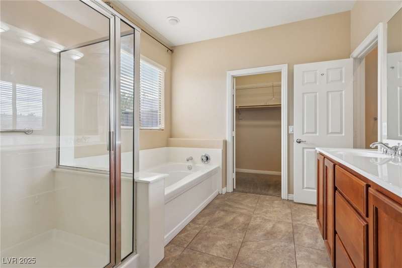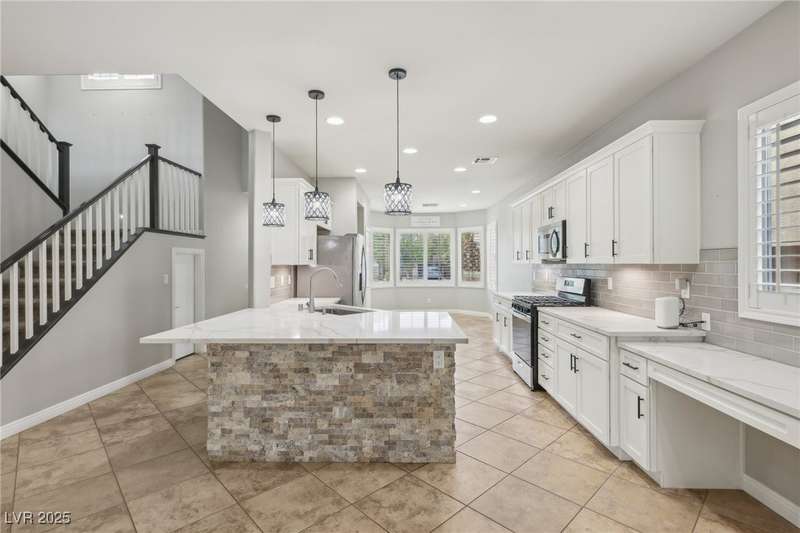 STUNNING & IMMACULATE 4 BR 3.5 BATH W/ 2 PRIMARY SUITES - 1 UP & 1 DOWN, POOL & OUTDOOR BBQ KITCHEN IN DESIRABLE WATERFALL COMMUNITY NEAR ALIANTE & VALLEY VISTA!! Incredible location in Double Cul-De-Sac, Large Loft, 9 FT Ceilings up & down, LARGE Secondary BR's w/ WI Closets, HUGE Great Room, 3 Car Garage, Shutters & Blinds Throughout. REMODELED KITCHEN: Lots of Cabinets and Countertop space w/Extended Breakfast Bar, Custom White Cabinets, Quartz Countertops w/ Custom Backsplash, Pantry, Bay Window, Open to Family Rm. PRIMARY SUITES UP & DOWN: Separate from other BR's, Balcony (Up Only), Huge W/I Closet, Separate Shower & Tub, Double Sinks, Separate Commode. BACKYARD: POOL, 15 ft Side Yard w/Artificial Grass, Full Length of House Covered Patio & BBQ Kitchen. COMMUNITY: Gated, Pool, Spa, Clubhouse, Exercise Room, 4 Parks include: Playgrounds, Splash Pad & Rock Wall. Close to Nellis & Creech AFB, 215, Shopping & great Schools! ASSUMABLE VA LOAN AT 2.375% FOR VETERANS!!