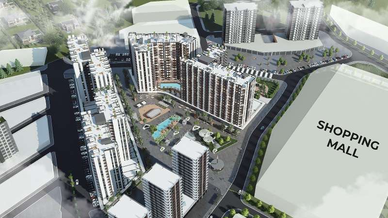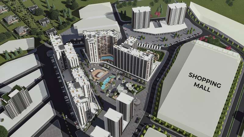 The project is the biggest in the area and is close to shopping malls, a police station, a municipal building, a university, and a hospital. The mixed-use complex, built on a 41,080 m² plot, features 20,000 m² of social spaces and a traffic-free square designed as an open-air shopping mall. The complex includes seven 15-story blocks and 624 flats. It offers various social facilities and services to enhance your quality of life. Amenities within the complex include an outdoor swimming pool, open and closed parking areas, an outdoor children’s playground, a basketball court, gazebos, an indoor gym, walking paths, decorative pools, a café, a restaurant, a market, a generator, 24/7 security services, and surveillance cameras.
