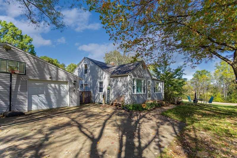 The low-maintenance country property you have been dreaming of! Set on over a half-acre in a private setting with an enviable 4-car garage perfect for the car enthusiast, hobbyist, or woodworker. This Cape Cod home already offers so much, with the opportunity to grow into the walk-up large attic or the full basement. The garage also accesses and is connected to the home via an expansive deck, imagine the entertaining you, your family, and friends would enjoy. Also enjoy an applianced kitchen, large living room, recently added main floor laundry with new PEX plumbing, 2nd lower level laundry, some fresh paint, gas heat with central air, and partially fenced backyard! Your country escape awaits!