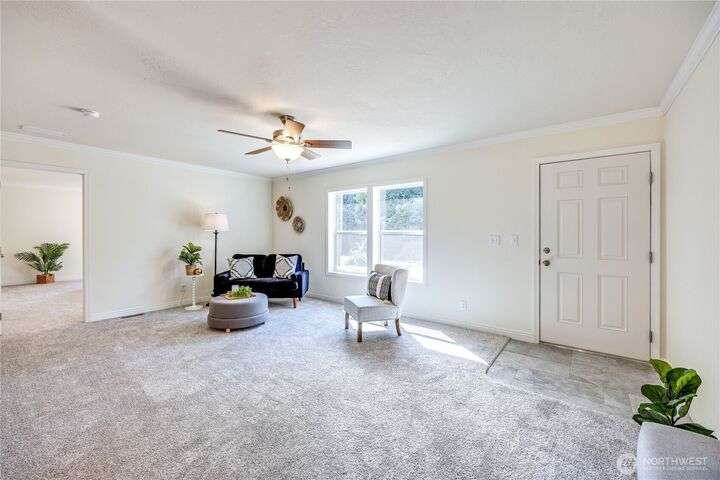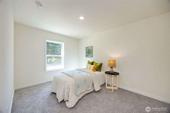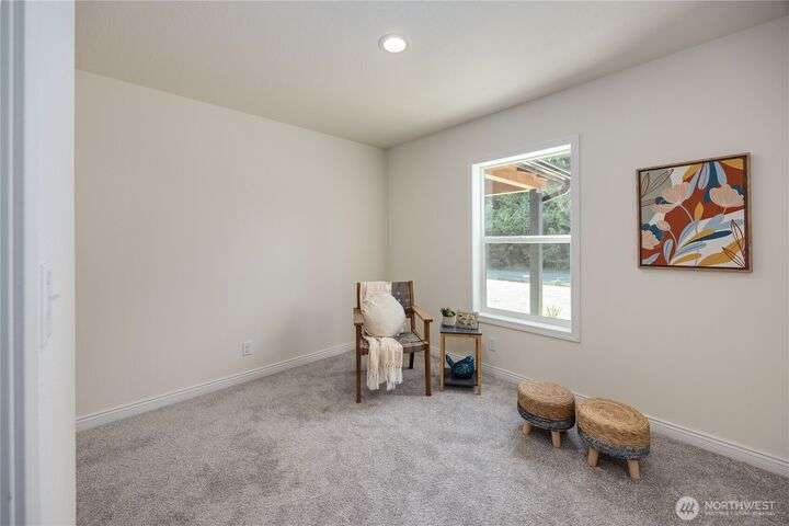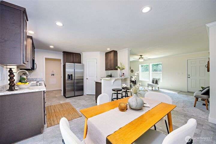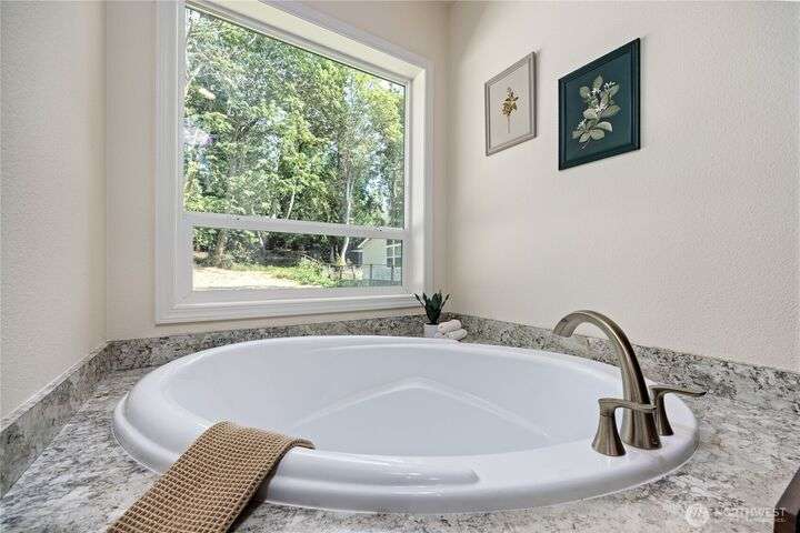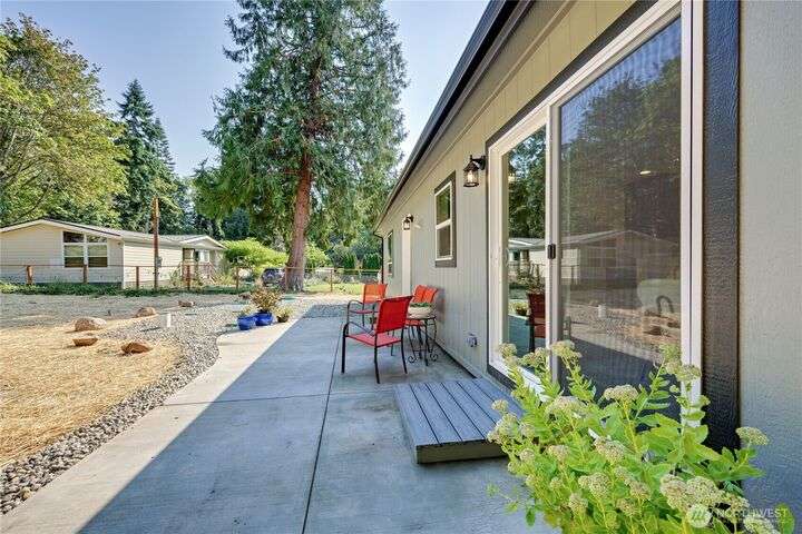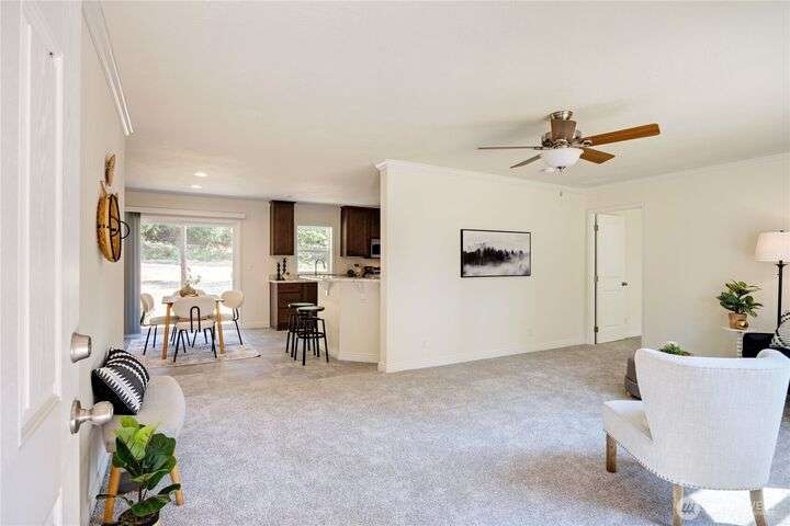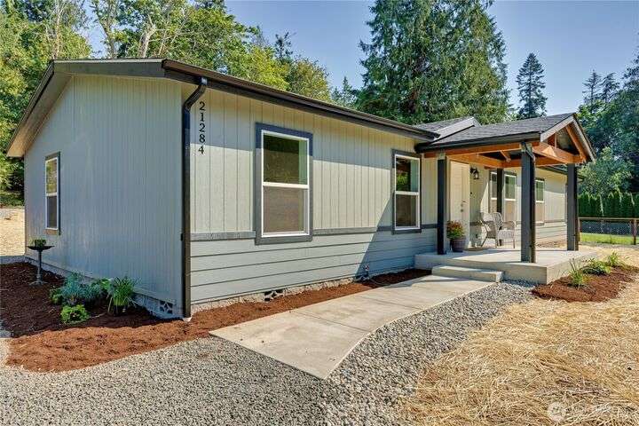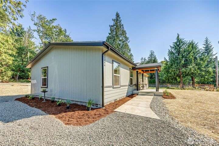 Brand new home in the waterfront community of Jefferson Beach. A charming front porch welcomes you into this one floor home featuring a great floor plan & vaulted ceilings. A spacious & private primary bedroom w/large walk in closet & designer bath w/deep soaking tub! Kitchen with eating bar, dining area, pantry and SS appliances also has access to the utility/laundry room. There is ample room in this home with 2 more bedrooms, den & guest bath located at opposite end of home from primary bedroom. Enjoy the huge back yard from the maintenance free porch! Jefferson Beach residents enjoy private beach access w/fishing pier, clubhouse & playground. Near to Seattle Ferries, golf course, restaurants, shopping, schools & outdoor adventures.
