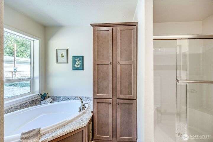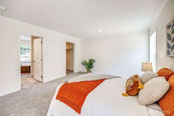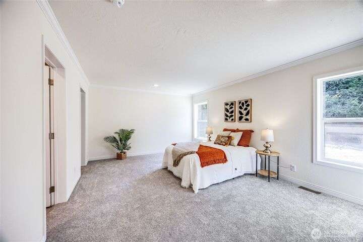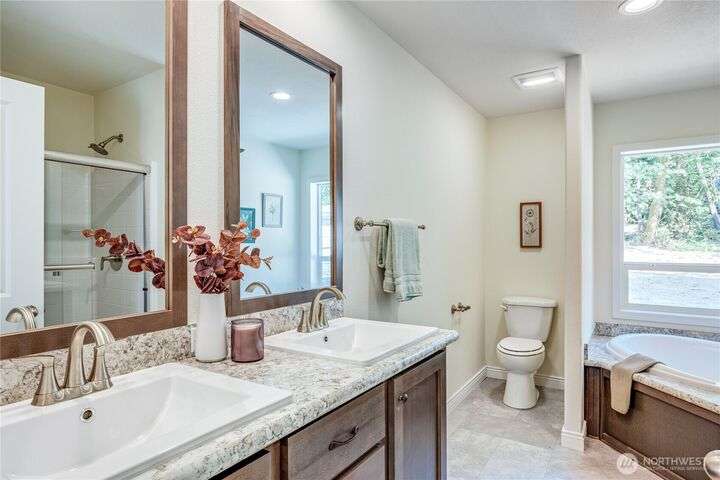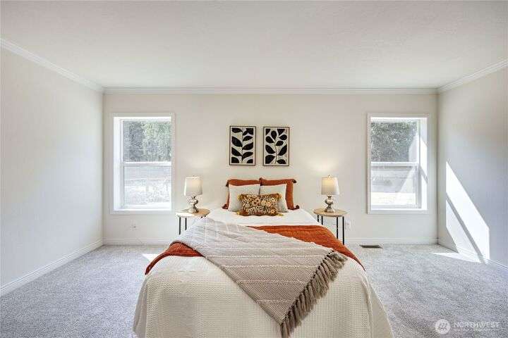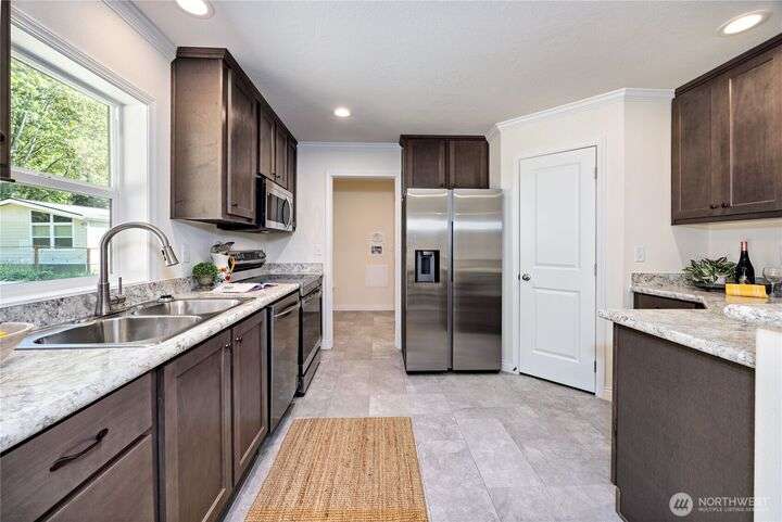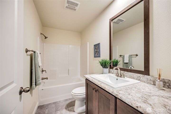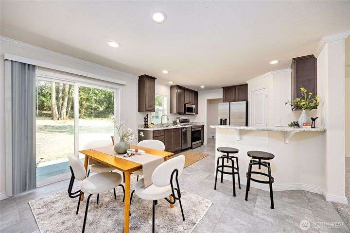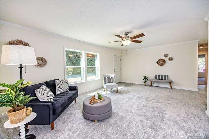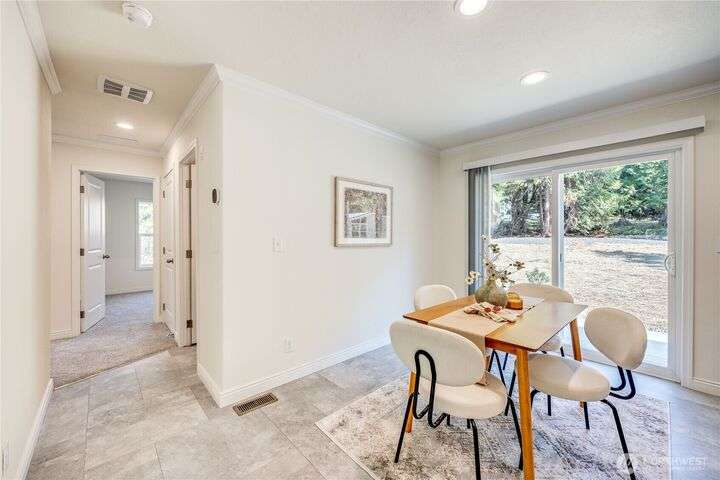 Brand new home in the waterfront community of Jefferson Beach. A charming front porch welcomes you into this one floor home featuring a great floor plan & vaulted ceilings. A spacious & private primary bedroom w/large walk in closet & designer bath w/deep soaking tub! Kitchen with eating bar, dining area, pantry and SS appliances also has access to the utility/laundry room. There is ample room in this home with 2 more bedrooms, den & guest bath located at opposite end of home from primary bedroom. Enjoy the huge back yard from the maintenance free porch! Jefferson Beach residents enjoy private beach access w/fishing pier, clubhouse & playground. Near to Seattle Ferries, golf course, restaurants, shopping, schools & outdoor adventures.