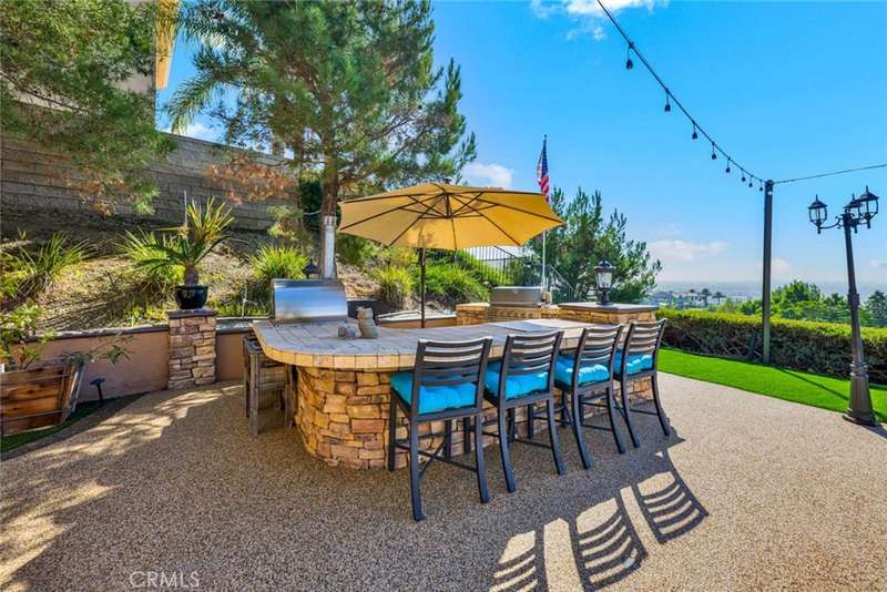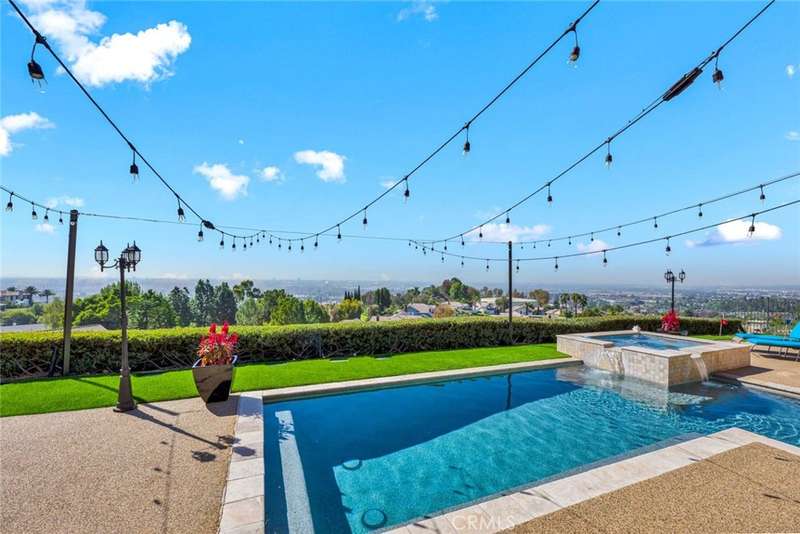 Imagine standing on a hill in Orange County with the entire OC basin laid out at your feet.By day you can see all of the landmarks-Disneyland,the Honda Center, Angels Stadium and more, and on a clear day, you can see Catalina Island and all the way to LA. The show starts when the sun sets and you're treated to magnificent works of art on the horizon.After sunset, the city lights start to shine and sparkle like jewels in a treasure chest. Now imagine this hill is in your own backyard! You enjoy this breathtaking view from the pool and spa, from the outdoor kitchen with barbecue, hibachi grill, pizza oven, refrigerator and bar seating for your friends & family.There are outdoor living areas under the awning and on the corner patio and there's even a putting green, all with a breathtaking view! Your private paradise also includes a magnificent,sprawling 4,345 square foot home! You traverse the hill and arrive at a gated enclave of incredible homes. When arriving at the home, you notice the meticulously manicured landscaping leading to a secluded porch and custom leaded glass double entry doors and a lovely fountain.They open to an elegant foyer with soaring 2 story ceilings and a gorgeous chandelier.To the right is the formal living room with elegant fireplace and the adjacent home office accessed through double doors from the living room or a separate entry door off the front porch.To the left is a formal dining room with ample space for large gatherings.A butler's pantry leads to a gourmet kitchen and breakfast room, both creating a great room with the family room with fireplace.Beyond the family room is an ensuite bedroom with private bath and access to the back and side yards.Rounding out the first floor is a powder room,walk-in pantry & laundry room.Upstairs,the staircase splits with the right side leading to the elegant owner's suite that takes in the magnificent view from indoors or a large balcony.There are 2 huge walk-in closets,an opulent spa style bath with jetted tub and separate shower & an exercise niche.Up the left staircase,there's a bonus room with limitless uses and access to the front balcony.The spacious secondary bedrooms all have big closets and consist of an ensuite bedroom with private bath and a pair of Jack 'n Jill bedrooms that share a bath.There are far too many wonderful things to say and list about this fabulous home.You really need to see it and experience it.Once you do that, you'll never want to leave! Come make it yours!