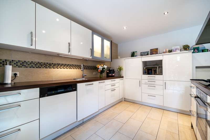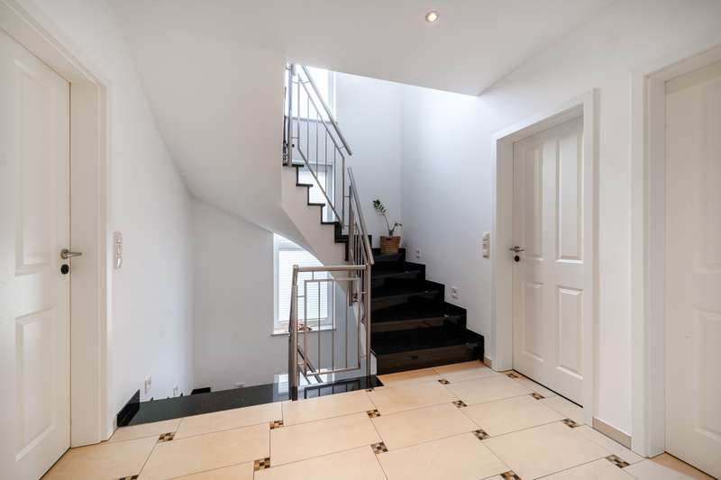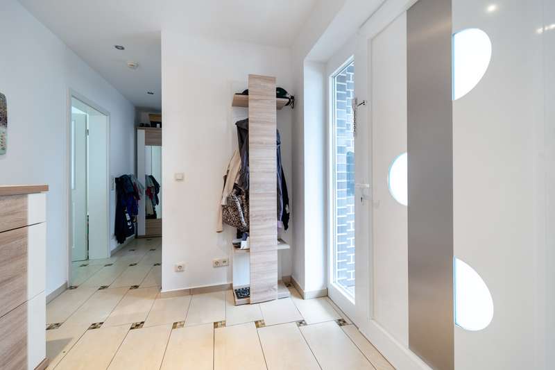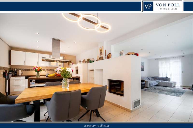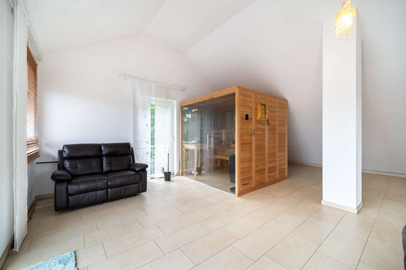 In an attractive location in Bielefeld-Quelle, embedded in a family-friendly residential area built in 2009, stands this modern detached house on a plot of approx. 472 m². The neighborhood is characterized by well-kept detached houses and offers a quiet yet central residential area. The house was built in 2009 and has been continuously modernized. Highlights include a retrofitted conservatory with access to the garden, a fireplace in the living area, a large roof terrace with whirlpool and a photovoltaic system with 16 modules. A modern wallbox for e-mobility is already installed and included in the purchase price. Heating is provided by a particularly efficient Viessmann Vitocal 300 groundwater heat pump. In combination with underfloor heating on all floors - including the attic and basement - this results in a future-proof, sustainable heating system with very good consumption values. The use of groundwater at a constant temperature ensures particularly high efficiency throughout the year. The entrance area with guest WC is located on the first floor. This is followed by the staircase leading to the upper floor and basement. The spacious living, dining and cooking area is open-plan and has a fireplace and direct access to the conservatory. The modern fitted kitchen is included in the price. The upper floor offers two children's rooms of approx. 15 m² and 19 m² as well as a spacious master bathroom and the master bedroom. On the top floor there is a spacious, open room with an integrated sauna and direct access to the large roof terrace. The large roof terrace has a whirlpool and can be shaded by an awning, making it a comfortable retreat on warm days. The basement is fully developed and, in addition to storage space, offers enough room for a home gym or other uses. Have we piqued your interest? Then we look forward to hearing from you by e-mail.