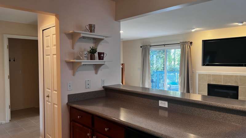 This lovely home has been well cared for and is in perfect shape. The location is wonderful as it is close to the center of town but far enough away to allow privacy and a peaceful escape from the hustle and bustle of todays life. You will love the view from the generous windows and especially the views from the deck. The deck is at the rear of the home and is shrouded in Cedar trees that provide year round seclusion. The kitchen is wonderful with an open area to the dining and living space. The bedrooms are a perfect size and will accommodate your every need. The finished basement with an egress window allows an opportunity for an additional bedroom if desired, The private secluded entrance is welcoming and comforting and the two car garage is a marvelous plus. Wine bar is included.