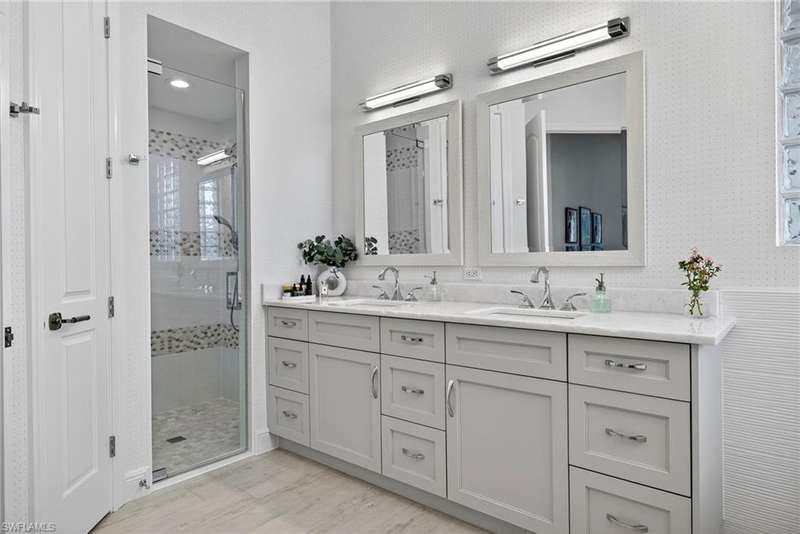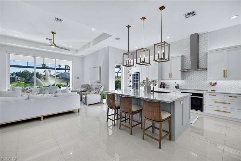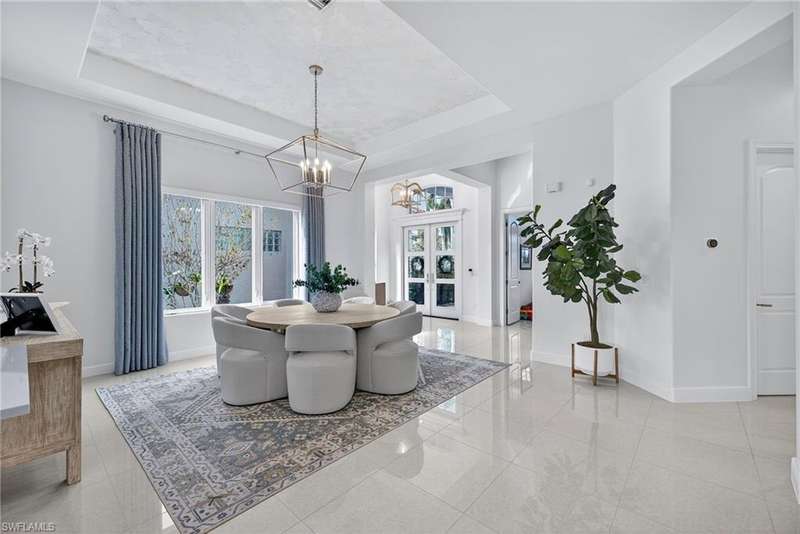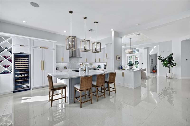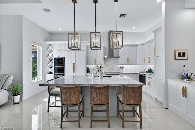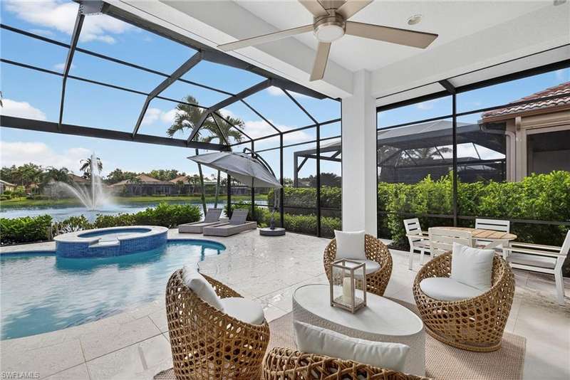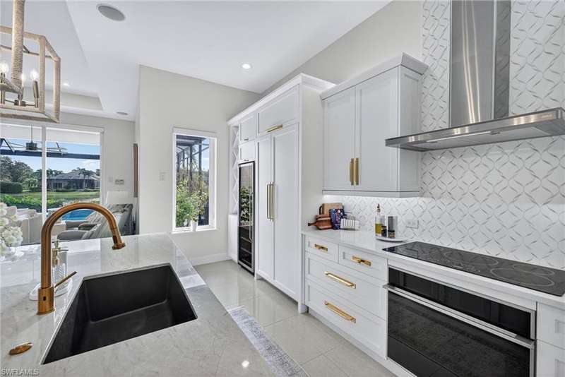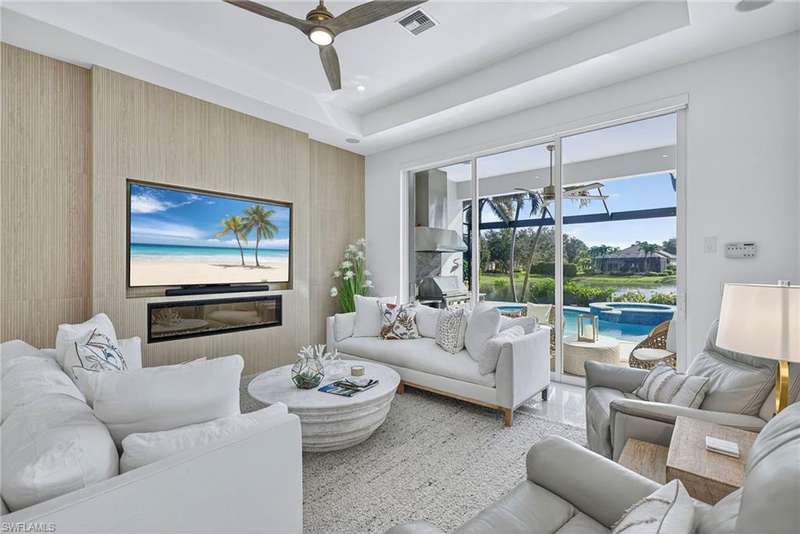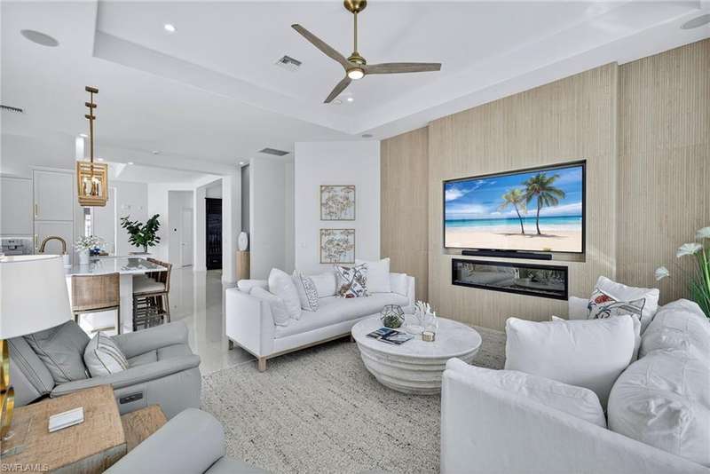 room floor plan showcases a custom feature wall with a Dimplex electric fireplace and flows seamlessly into the stunning chef s kitchen featuring quartzite countertops, a panel-ready refrigerator, wine cooler, and newer stainless steel appliances. Step outside to the private outdoor kitchen with a professional-grade grill and refrigeration, surrounded by new travertine lanai pavers and refinished pool waterline tile perfect for effortless outdoor living. Additional upgrades include newer A/C systems (2021), impact windows and doors, fresh interior and exterior paint, new landscaping, and a new roof scheduled for completion October 2025. Offered furnished for your convenience, this home combines sophisticated design with everyday comfort. Located in the gated Hammock Isles neighborhood of The Vineyards, with optional Vineyards Country Club membership, you re minutes from Naples world-class beaches, dining, and shopping. This home offers the perfect blend of luxury, lifestyle, and locat