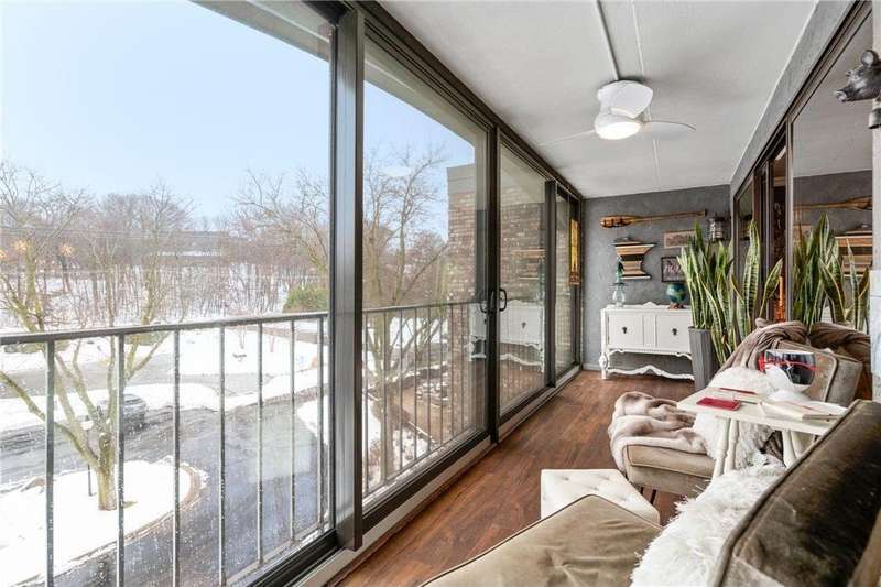 Lovely top floor Lilydale condo... High demand Lexington-Riverside Condo perched on elevated grounds overlooking the convergence of Minnesota & Mississippi Rivers. Fabulous amenities include awesome indoor heated pool for year-round enjoyment, bubbly jetted hot tub & sauna to warm from winters chill, exercise facility, tennis courts, 2 story billiards & ping pong room, plus private party room w/fireplace, kitchen, and river views for memorable gatherings. Step outside to explore serene private ponds or stroll along the riverbanks. Inside, the spacious living room welcomes you with a cozy fireplace, while the deluxe bedroom/den with a classic Murphy bed offer versatility. Entertain effortlessly in the open-concept layout with a white kitchen featuring granite counters. The living room is open to the wonderful glazed/screened balcony. 2 bathrooms & in unit laundry too. Every detail has been thoughtfully designed for comfort & convenience. Easy living 365 days a year... Enjoy!