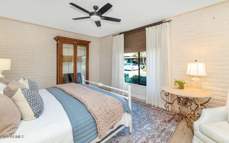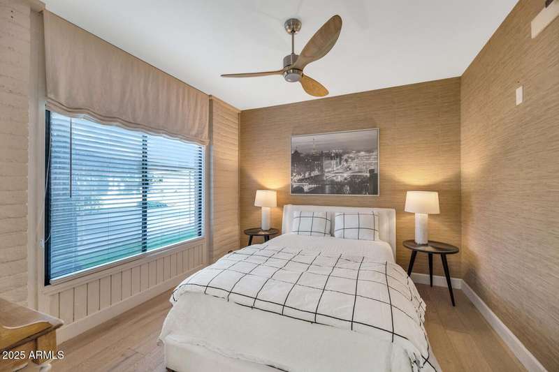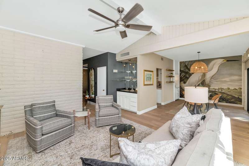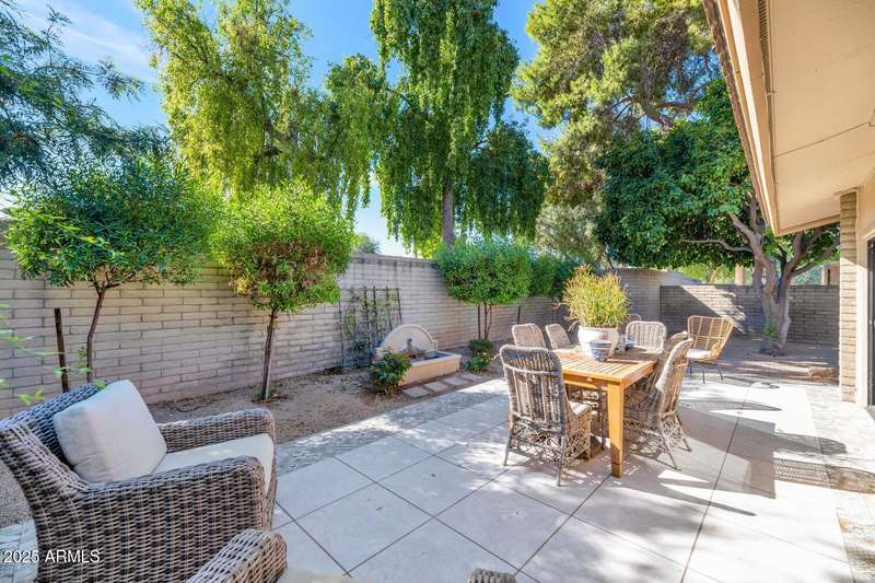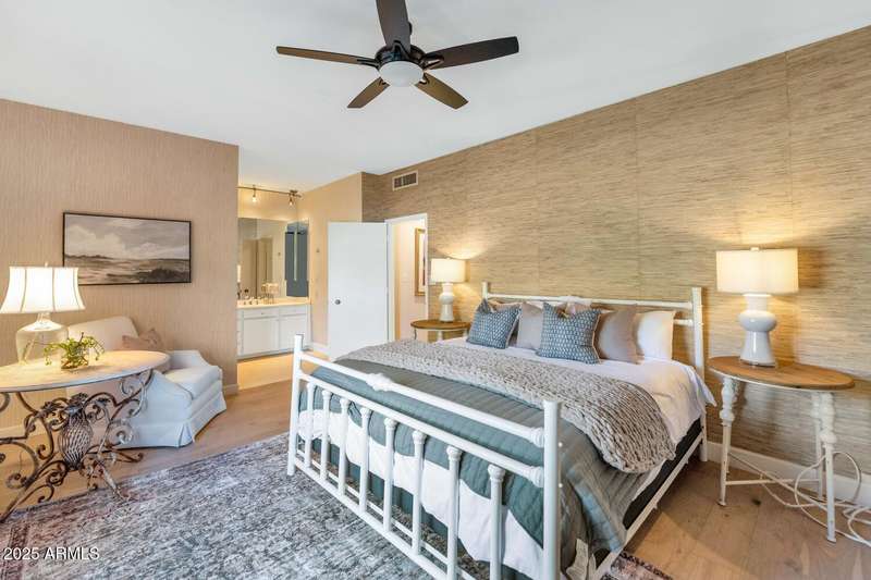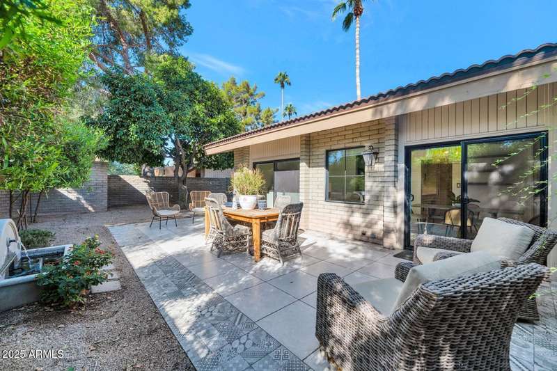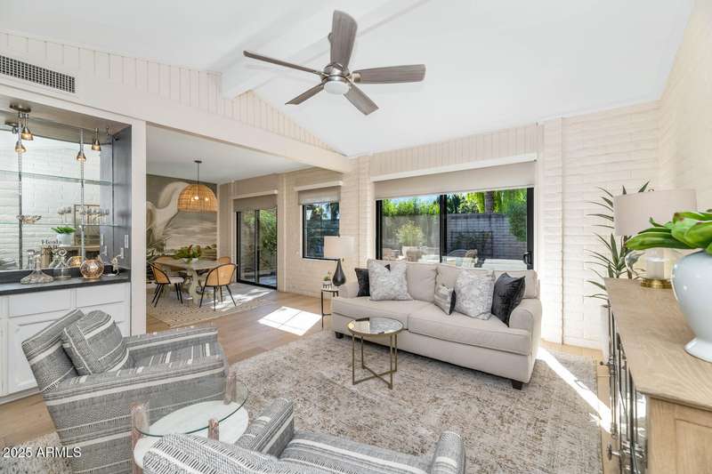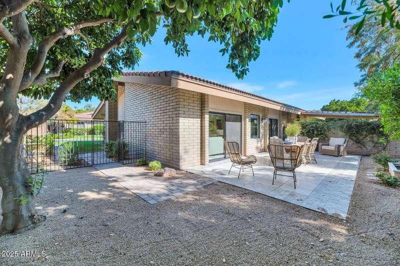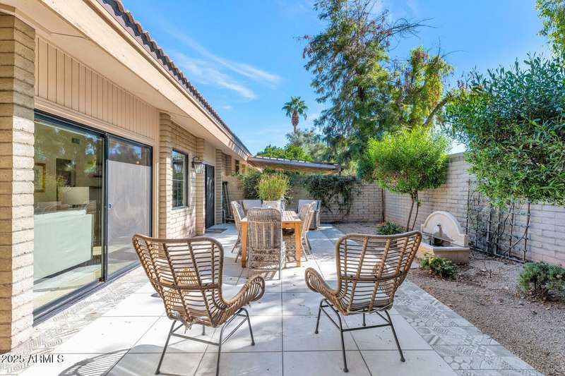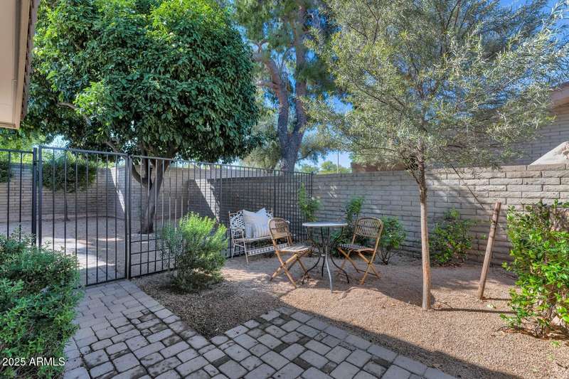 RESORT-STYLE LIVING at its best in a 24/7 guard gated community. This charming 2 bedroom/2 bath townhome is designer owned and completely charming! Just minutes from Camelback Mountain, Fashion Square, Old Town Scottsdale, and all the best dining and entertainment Scottsdale has to offer. Community amenities include 3 swimming pools, hot tub, sauna, fitness room, tennis court, basketball court, clubhouse, and an HOA that includes landscaping and exterior maintenance of your home. This is great as a low maintenance second home, for busy singles, or those who want to live in a fabulous Scottsdale location. Makes a great rental too. This property is on a LAND LEASE (monthly HOA and Land Lease total is $1,110)