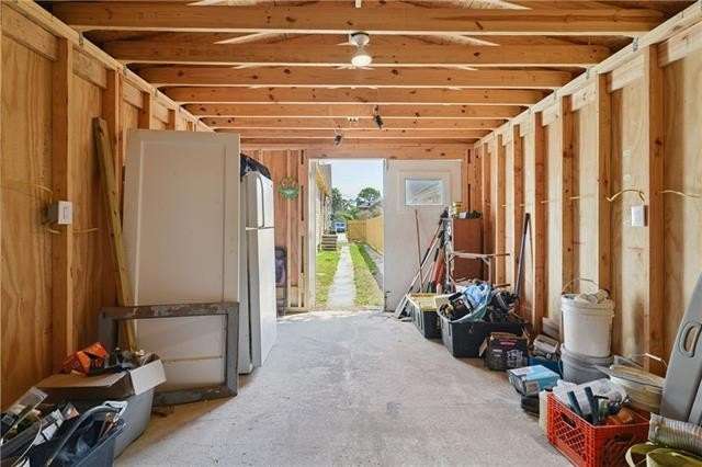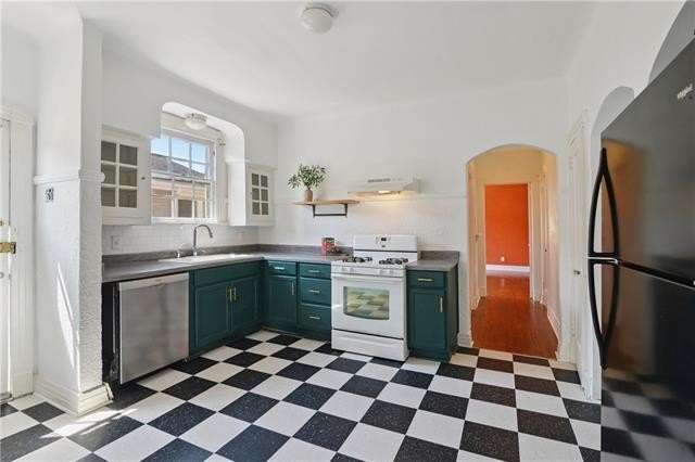 Dreamy Storybook-style double now available! Step inside through the whimsical arched doorway into dual parlors on both sides, featuring wood floors and arched columns that separate the flexible living spaces. Each side includes a bright, spacious kitchen along with one bedroom and one bathroom. Recent updates include new flooring and tile in select areas, fresh paint, a 3-year-old roof, and two rebuilt garages/workshops. The property also offers two separate driveways. The home can function as either a double or a single-family residence, as there is currently an open passageway between the two kitchen areas. While the second kitchen is being used as a laundry room, the dividing wall can easily be restored to return the property to a true double. This move-in-ready home is waiting for its next chapter—just add your personal touch and make it your own. Easy to show!