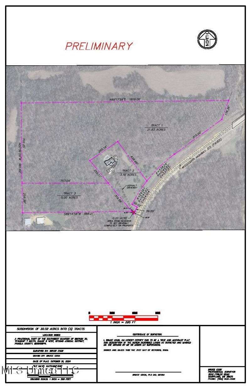 These Tracts have not had tax information from assessor since it was just subdivided from home. See Survey and Buyer to verify Correct Taxes and Schools. This is Tract 1 of 30 acres. Being sold as 21.83 acres. Land is located on Mississippi Hwy 315 going east before Union Rd